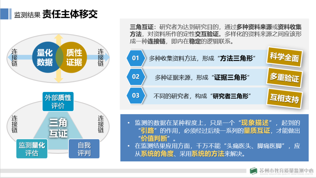苏州市人民政府教育督导室督学处处长朱文潇强调了本次活动的目的、意义和任务要求。他首先对各区域给予本次活动的高度重视表示了感谢,并指出学业质量监测的价值在于运用监测结果指导教育教学工作的改进。希望各区域参与报告撰写的专家们能够基于2020年苏州市义务教育质量监测数据完成各市(区)综合分析报告的撰写工作,为各市(区)人民政府、各市(区)教育局提供精准、简要的教育决策咨询报告。 他强调,在报告研制过程中要坚持公正的原则。各区域负责同志在撰写各自区域报告的过程中,要能够分析、总结出各区域好的做法;同时更要指出各区域存在的主要问题。 为提升综合分析报告撰写的专业性,本次活动邀请了浙江省台州市义务教育质量监测中心主任江照富作了题为《如何撰写基于监测结果的综合分析建议报告》专题培训。 江主任从明确报告撰写的重要性、把握报告撰写的基本面、突破报告撰写的关键点以及综合分析报告案例分享四个部分进行了专业且生动的培训与解读。 他指出,报告成文不是监测工作结束,而是监测工作价值发挥的开始。质量监测主要功能在于诊断,作为一种全新的大尺度评价方法,其价值取向在于追求对教育教学过程进行全面解释的同时积极尝试建构更利于学生发展的教育政策环境模型和教学行为优化态势。 江主任的报告有助于提升各区域专家的全局视野和数据思维,对各区域的综合分析报告撰写具有重要的指导和借鉴意义。 苏州市教育质量监测中心主任罗强从苏州教育在全国、全省的位置,质量监测解决问题的基本策略、综合分析报告撰写的依据以及综合分析报告撰写要求等四个方面进行了培训。 罗强主任指出,监测的数据在某种程度上,只是一个“现象描述”,起到的“引路”的作用。基于数据的量化评价与基于观察的事实、基于经验判断的质性评价,需要相互印证,才能做出“价值判断”。 他指出,2020年综合分析报告撰写的功能定位是:一是分析诊断区域教育的优势与不足;二是挖掘寻找区域教育的关键影响因素;三是梳理上一年问题的整改、落实情况;四是为区域教育教学改进提供意见建议。 他要求,各区域专家在报告撰写中要排除身份干扰,坚持独立性、公正性、精准性和专业性的原则。 各区域在报告撰写过程中,严格遵循“分工撰写-相互讨论-交叉审稿-集体审稿”的撰写流程,由各区域组长负责把控报告撰写方向,协调组员协同配合,并负责最后统稿工作。 此外,本次报告撰写活动通过区域间交叉合作的形式实现专家共研,每个区域都有1位来自其他区域的交流组员和1位监测中心的同志,共同参与报告撰写工作。各位专家在撰写报告中相互配合、尽职尽责、精益求精,通过不断打磨与研讨,提升报告的质量。 << 滑动查看下一张图片 >> 本次报告撰写工作责任重大、时间紧迫、任务艰巨,各区域都在规定时间内顺利完成了区域综合分析报告初稿。 后续,监测中心将继续配合各市(区)专家,对报告的内容进行细化和完善,并邀请相关专家进行审稿,力争为各市(区)人民政府和教育主管部门提供一份精准、简要、科学而又高质量的决策咨询报告,从而为区域教育治理现代化水平的提升提供支撑。 编辑丨周利 审核丨宋一丹 教育测评论文系列 1 2 3 4 5 教育测评高研班纪实系列 1 2 3 4 5 6