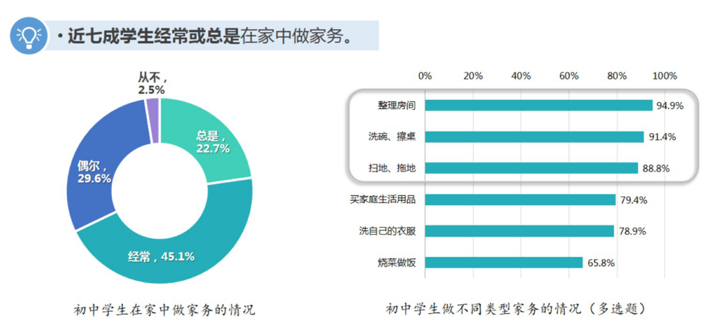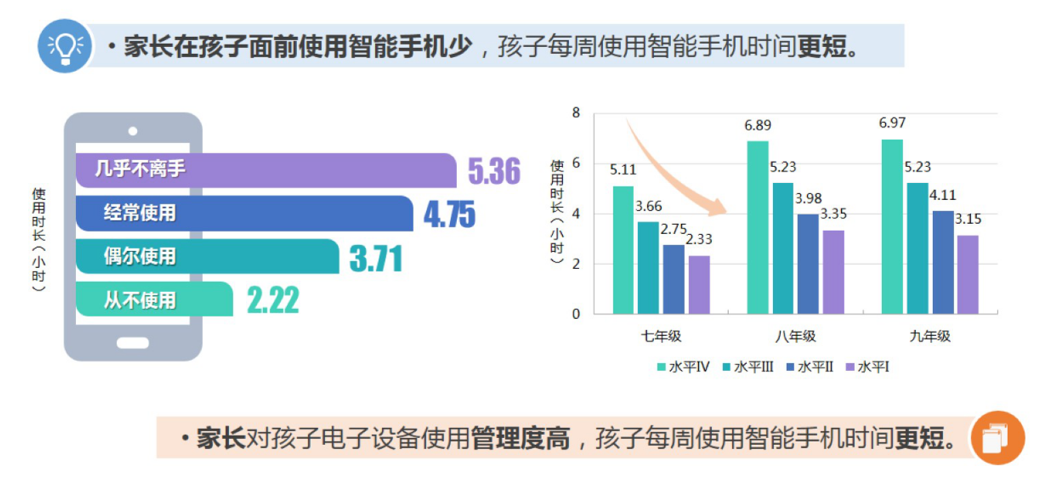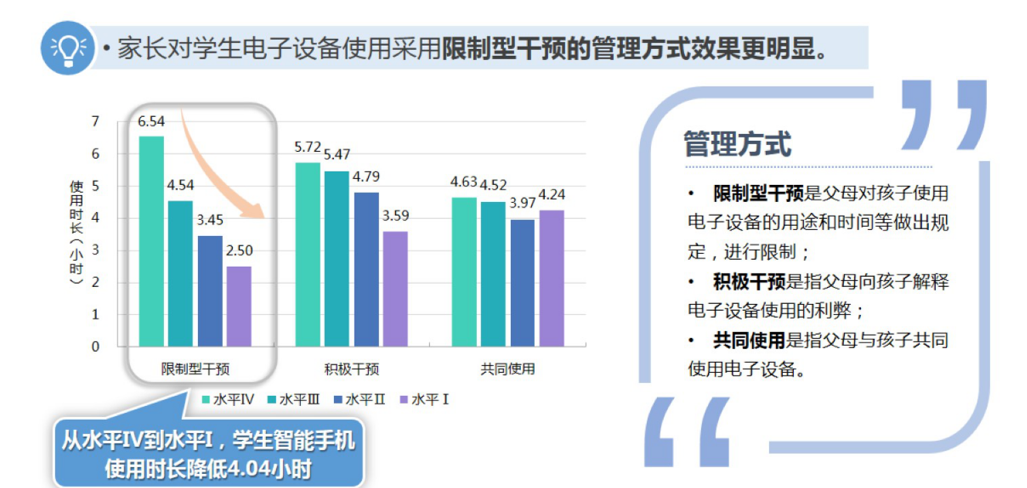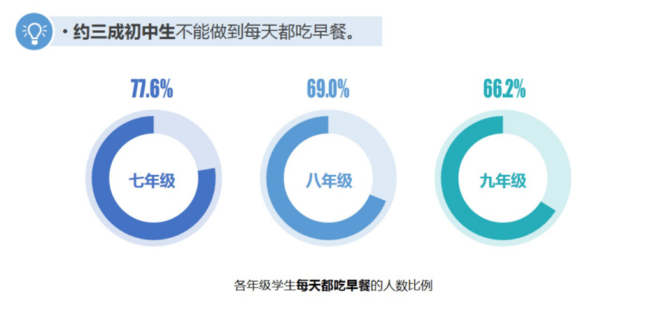 (一)加强亲子沟通,全方位关爱并陪伴孩子成长。 亲子关系作为家庭环境中的关键因素,对青少年的成长和发展有着直接的影响,良好的亲子关系是青少年积极发展和健康成长的基础。 对于家长而言,一方面要意识到早餐对学生身体、智力和心理发展的作用,每天给孩子做早餐,让孩子摄取足够的能量和营养因素;另一方面,要提高对孩子的关心和爱护,改善对孩子的抚养方式和教育方式。对于学校而言,要加大宣传教育,提高家长和孩子对早餐的重视程度,帮助学生养成每天吃早餐的好习惯。同时积极组织开展家长和学生共同参与的教育实践活动,通过丰富多彩的活动来增进亲子沟通,帮助家长和孩子构建和谐的亲子关系。 (二)注重家校共育,引导孩子合理使用电子设备。 对于家长而言,首先要做好表率作用,在孩子面前尽量减少电子设备的使用;其次,要认识到电子设备对孩子的身心健康以及学业成绩还存在着一定的负面影响,进而在学生电子设备的使用时间上进行科学管理;此外,还要加强与孩子的沟通交流,引导孩子正确使用电子设备,避免出现沉溺于电子游戏的现象。 对于学校而言,要加强对家长和学生电子设备使用的宣传教育,及时推送相关防范知识,引导学生正确使用电子设备,自觉抵制网络不良信息及不法行为。 (三)着力减负增效,切实保障孩子身心健康发展。 对于家长而言,一方面要认识到过重的学业负担会影响孩子的身心健康,避免额外加重孩子的学业负担,尽可能保证孩子充足的睡眠和体育锻炼时间等;另一方面,家长要正确看待课外补习,合理安排补习时间,避免盲目跟风报班。 对于学校而言,一方面,要加强减负增效各项工作落实,严控作业总量,科学合理布置作业,提高作业效能;另一方面,要加强对家长和学生的引导,形成家校教育的合力,切实减轻违背教育教学规律、有损中小学生身心健康的过重学业负担。 (四)推进五育融合,促进孩子德智体美劳全面发展。 对于家长而言,一方面,要注重激发学生内在需要和动力,调动孩子的积极性,培养孩子广泛的艺术和体育兴趣爱好,让孩子从小养成爱劳动的习惯。另一方面,引导孩子通过体美劳等活动缓解学业压力,强健体魄,提升智力。 对于学校而言,首先,要开齐开足体美劳教育课程,规划好体美劳教育课程内容,真正发挥体美劳教育的育人功能;其次,要建立健全家校共育工作机制,指导家长和学生开展体美劳方面的教育实践活动,提高教育效果。