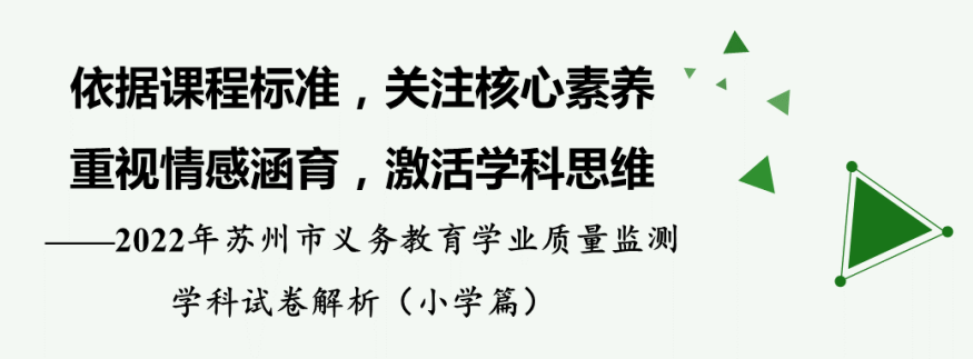 2022年9月14日,第八次苏州市义务教育学业质量监测顺利实施,全市范围内共307个监测点,336891名学生参加了本次监测。本次监测学科包括语文、数学、英语和科学四门学科。监测试卷研发工作于2022年1月启动,共历时7个月,200余位专家参与,经过两轮入闱和多轮专家审校等环节,最终形成22套正式学科试卷及11套锚题试卷。 2022年苏州市义务教育学业质量监测学科试卷的研制遵循“基于课标,关注素养,面向世界,着眼未来”这一基本原则,紧扣2022版义务教育课程标准的最新要求,关注义务教育阶段学生各学科核心素养,继续探索跨学科命题,注重实现“学教评一致性”。同时,在试卷研发过程中充分考虑新冠肺炎疫情带来的影响,并为“双减”政策的落地助力。 今年的学科试卷研发围绕“探索科学的考试,引导科学的应试”,在以下几个方面进行了探索:一是在试题设计中,更加关注拔尖创新人才;二是在试题功能上,研制多维细目表,重点考查基础知识,基本技能,增加综合性、开放性、应用性、探究性试题比例;三是在情境设计中,基本杜绝机械性试题,加强情境设计,细分情境类型,注重问题解决,注重激发学生学习情感,促进学生全面、可持续、适应未来的发展。 苏州市义务教育学业质量监测小学学科试卷考查的是初一新生经过小学阶段的学习后所获得的知识、能力和素养。 下面给出本次监测各学科试卷的特色与亮点解析: 聚焦文化育人,关注思维过程 小学语文内容维度↓ 2022年苏州市义务教育学业质量监测小学语文试卷坚持落实立德树人根本任务,充分挖掘中华优秀传统文化的当代价值,汲取革命文化和社会主义先进文化蕴藏的深厚力量,试题融通古今资源,注重教考衔接以及学习方法的渗透。特色与亮点具体体现在以下三个方面: 一、立意体现育人价值,引导学生全面发展 试题充分体现语文学科文以载道、以文化人的特点,将中国优秀传统文化和革命传统文化融入试题之中,进一步增强学生对中华文化的理解,引导学生坚定文化自信、厚植家国情怀。此外,试题命制坚持“五育并举,全面发展”的理念,将体育、美育和劳动教育有机融入试题。 例如,A卷和B卷语言积累所选择的中国首辆火星车“祝融”和“神州十三号”载人飞船主题素材,都能够让学生感受航天科技的魅力,引导学生传承载人航天精神,增强民族自豪感,并启迪学生的科技思维,培养科学精神,培育创新能力。B卷选用邴继福《一把炒黄豆》作为阅读素材,文中通过环境的描写、人物的刻画,写出了抗联队伍行军的困难、战士们的英勇无畏以及战争的残酷,引导学生铭记革命光辉历史、感受党的初心使命,赓续红色基因。 二、选材注重博古融今,激活学生生活体验 试题选材既从中华优秀传统文化中寻找育人的源头活水,又关注热点,与时俱进,贴近学生生活,既引导学生借鉴古人智慧、汲取精神力量,同时引导学生立足当下现实,关注社会发展。 例如,A卷文化积累通过创设“古诗词中的劳动文化”项目研究小组问题情境引导学生传承中国劳动文化;B卷通过创设“诗意核酸采样卡”这一贴近学生生活体验的情境,考查学生对古诗词的掌握情况,引导学生传承中国优秀传统文化。A卷和B卷信息文本阅读“手机是否可以进校园”和“表情包”两篇素材关注热点,贴近现实生活,能够激活、调动学生的学习生活体验。试题要求学生依据所给材料,对中小学生手机是否可以带入校园表达自己的观点和理由,以及要求学生自创表情包,写出表情包的内容和使用场景,考查了学生信息筛选能力、综合分析能力、语言表达能力以及辩证思维和批判性思维等关键能力。 三、命题重视教考衔接,关注学生思维过程 试题命制在教考衔接上精耕细作,将考查内容与学生所学知识点巧妙融合,注重学习方法的渗透,从而发挥试题的教学引领作用。此外,试题加强对学生思维过程的考查,试题设问的逻辑性增强,加强对学生逻辑思维能力的考查。 例如,A卷文言文阅读《天工开物·锤锻》对于加点字解释的考查,通过让学生用自己生活中熟悉的词来解释文中的词;B卷《王戎观虎》《李广射虎》对于加点字解释的考查,通过将学生学过的课文示例融入试题之中,引导学生学以致用,同时引导教师在教学中注重学习方法的渗透,体现了试题的教学导向和引领作用。A卷19题和B卷19题,以多选题的设问形式进行考查,让学生从四个选项中选出最为贴切的一项,选择不同的选项所得的分值不同,不仅考查了学生的语言文字能力,还考查了学生思维的深度,注重对学生思维过程的考查。 聚焦数学核心素养,发挥数学育人作用 小学数学内容维度↓ 2022年苏州市义务教育学业质量监测小学数学试卷关注优秀传统文化和社会发展热点,通过真实问题情境,充分发挥数学的育人作用。试题加强教考衔接,重视数学理性思维,聚焦数学核心素养,加强关键能力考查,突出通解通法,淡化技巧要求。特色与亮点具体体现在以下三个方面: 一、创设问题情境,发挥育人作用 试卷坚持从真实生活中创设问题情境,体现数学与学生生活的联系,体现数学应用广泛、联系实际的学科特点,同时将必备知识、关键能力、学科素养、核心价值的考查嵌入真实的问题情境。 一是创设传统文化情境。例如,A卷第2题以利用竹篾制作风筝为试题情境,以轴对称知识为载体,考查学生直观想象的学科素