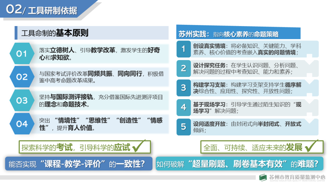 王主任指出,工具研制应坚持四条基本原则:一是落实立德树人、引导教学改革,激发学生的好奇心和求知欲。二是与国家考试评价改革同频共振、同向同行,积极借鉴中高考命题改革成果。三是坚持与国际测评接轨,充分借鉴国际先进测评项目的理念和命题技术。四是突出 “情境性”“思维性”“创造性”“情感性”,提升育人价值。