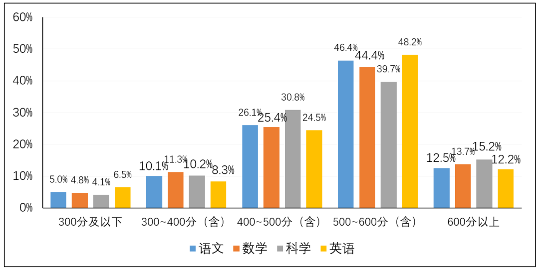 调查显示,苏州约六成多的学生分布在500分以上分数段,其中有15%左右的学生超过600分。学生对大部分学科内容指标掌握较好,在大部分学科能力上表现也较好。并且有五成左右的学生学业综合素养较高,得到全面发展。