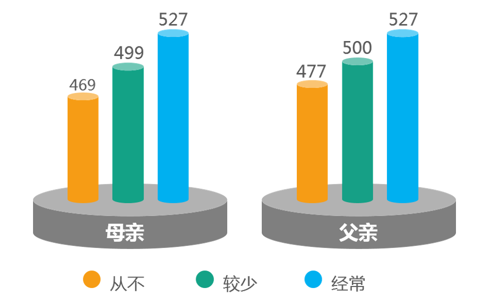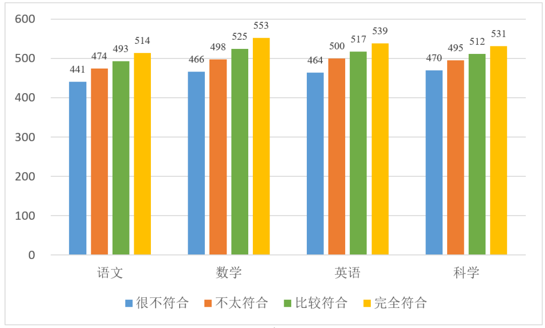 监测结果显示,父母经常陪伴孩子阅读,学生的语文、数学、英语、科学各科成绩得分都最高,父母在家不阅读的孩子各科成绩得分最低。
