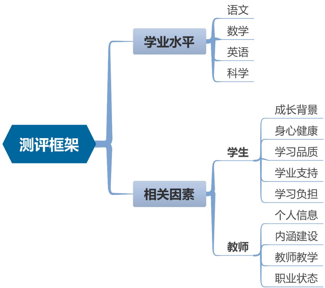 苏州监测以课程标准为依据,通过学校全覆盖、学生等比例抽测的方式,获取学生在语文、数学、英语和科学四门学科的学业表现,以及自身学习因素、家庭环境因素、学校环境因素的基本信息。