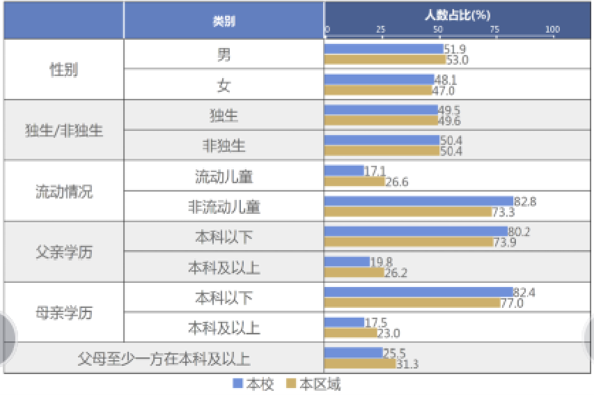 图1 本校和本区域2019年初二学生的“基本信息”
