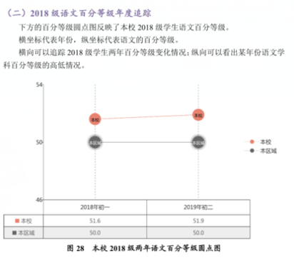 通过一年多的改进,我校2018级学生在语文的相关领域取得了显著的成绩。监测数据显示我校语文百分等级总体获得了提升,低分段学生明显减少。
