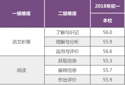 表1 本校2018年初一学生在语文相关维度的得分
