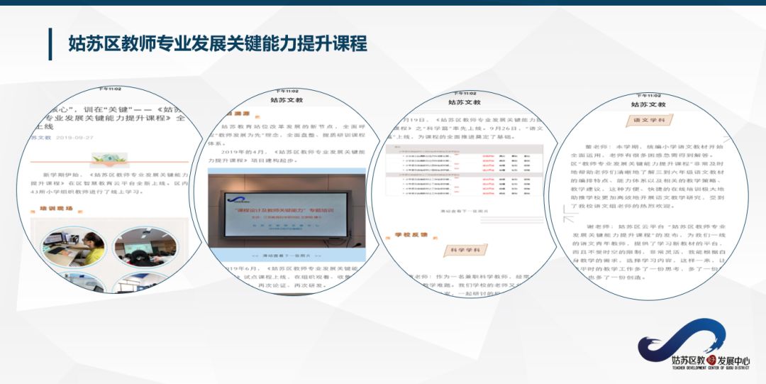 5.建构姑苏区教师专业发展关键能力提升课程群。聚焦教师专业发展的精准化、体系化、实效化研训课程建构与实施,聚焦教师专业发展中的关键能力、亟待提升能力、缺憾能力等,瞄准问题、精准解惑、注重实操、短小精悍。2019秋学期,“姑苏智慧云”就共计推送近百节关键能力提升课程,成为姑苏教师丰实“教力”,提升“本领”的有力抓手与亲密伙伴。