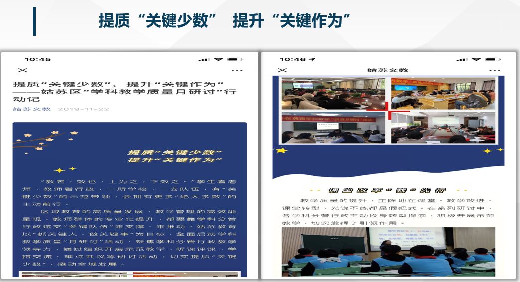 为防止各校提出的教学改进停留在一纸方案中,姑苏教育实施了一系列教学质量提升工程行动。