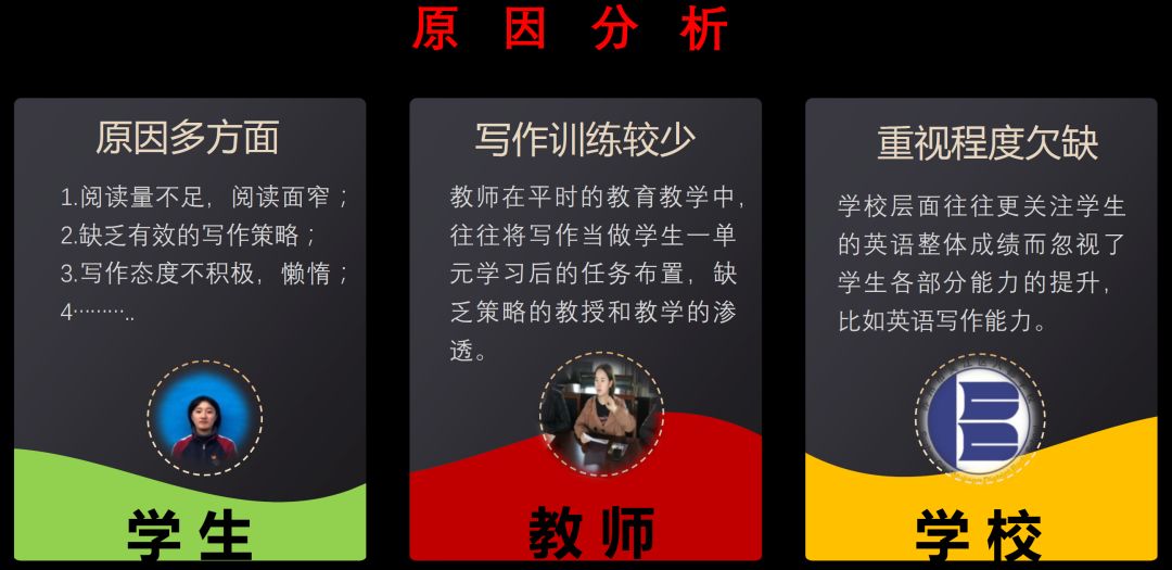 通过准确归因后,我校通过实践研究总结,基于教育教学规律,立足学校和学生实情,提出了一些学生英语写作中的策略和方法指导: