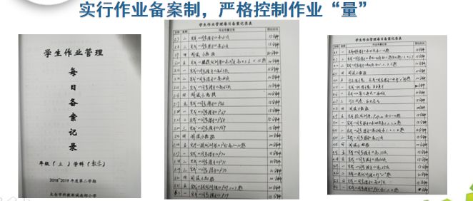 我国小学生目前的作业量远超国际平均水平,很大程度上造成了学生睡眠不足,影响其生长发育,在学习上出现厌学、逃学等问题。所以为了减轻学生课业负担我校采取了作业备案制的形式来控制学生的作业“量”,保证中高年级数学作业控制在30分钟以内。每天的数学作业都会在备课组长那登记备案,教导处随机检查,以此来规范和控制教师布置作业时的量。