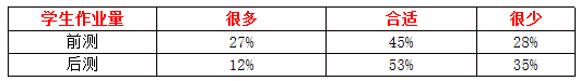 表2 “学生作业量”前后测数据对比