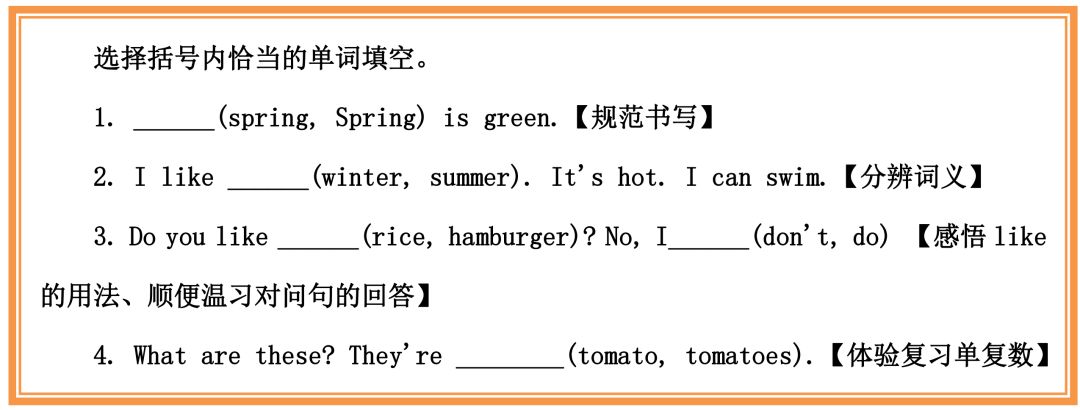 日常延习单引导学生在语境表达中体悟词汇的正确用法。在设计时不仅仅局限于本单元的重点内容,还要与之前学习过的相关内容相联系,及时对混淆点比较辨析,加深印象。