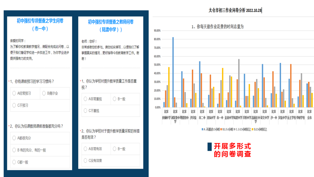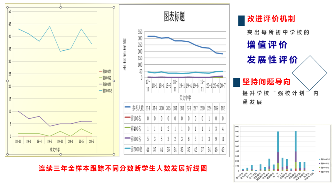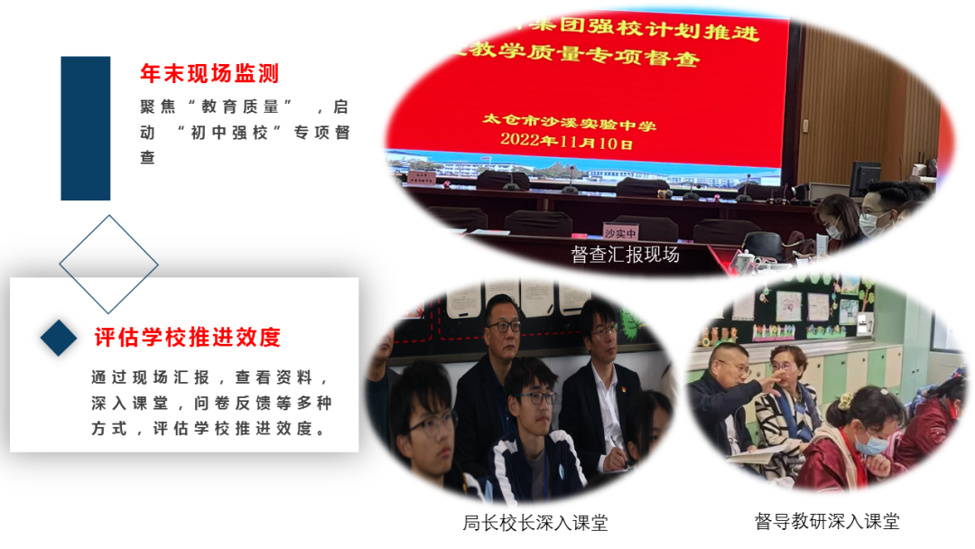 作者:董辉 太仓市教育督导与质量监测中心 PART 1 数据诊断 根据苏州市2021年度质量监测区域主报告相关数据,我区域初中学生在入学时各科学业质量表现均较好,但进入初中后呈现整体下滑趋势,初一到初二期间学业成绩下滑更为明显(见图1),且在四水平学生人数分布变化中也出现了高水平学生人数减少,低水平学生人数增加的态势(见表1)。 图1 本区域2019级三年各科百分等级圆点图 表1 本区域2019级和2020级各科四水平占比年度增值表 PART 2 改进过程 01 年初诊断分析,指导完成三年“强校计划”行动方案。 2021年11月至2022年1月,我区域组织专家团队对学校开展调研,根据学校自我诊断报告,对学校内部现状和外部条件进行态势分析,对重要性与可行性进行校本探究,全面深入剖析学校发展瓶颈与难题。选择学校面临的最重要同时又能够解决的问题作为强校撬点,寻找学校“最近发展区”,联动其它方面共同突破发展。协调组织专家进行方案论证,进一步完善学校行动方案,实施精准强校举措。在评估论证的基础上,指导学校做好“一校一策”。 02 年中线上交流,修正完善各校“强校计划”实施方案。 2022年7月,协调导师组专家对初中校开展线上交流汇报,监测学校上半年度“强校计划”的实施情况,及时修正学校实施方案,调整工作计划,完善行动方案。在各学校汇报交流的基础上,对每所学校从工作亮点、存在问题和修正意见等方面做出了具体的指导。同时,定期召开初中校长例会,定主题,以当场抽签形式随机抽取交流学校。校长交流“强校计划”行动实施情况,分析学校阶段性质量数据,查摆问题,提出下阶段改进策略和“强校”推进举措,引领各校坚持以学生核心素养培育为目标,树立正确的教育质量观,完善与中考改革要求紧密结合的课程实施方案,提升学校教育教学质量和学生综合素养。 03 年末现场监测,评估学校“强校计划”推进实施效度。 2022年11月起,协调专职督学、教师发展中心专家、教育集团学校骨干教师组成评估组,聚焦“教育质量”,对全市各初中“强校计划”实施情况进行全方位评估,通过问卷调查,随机观课、查阅资料等方式,全面了解学校的课堂教学、日常管理等实施情况。督查组及时将学校管理、课程建设、课堂教学等各方面的改革经验中最有价值、最成功的部分加以提炼,并进行了现场反馈,指出了学校前阶段实施工作中存在的亮点和不足,指导进行针对性的改进。 04 改进评价机制,提升学校“强校计划”内涵发展。 为了更有效的督促各校“强校计划”正常推进。我区域改进了评价机制,突出每所初中学校的增值评价和发展性评价,坚持过程性评价与终结性评价相结合,坚持自我评价与外部评价相结合,协调专职督学和责任督学开展每月一次的线上或线下的督查调研,及时了解各初中学校“强校计划”实施动态。坚持问题导向,服务学校,督查与指导并重,引领学校有序达成阶段性目标。 PART 3 成果体现 2022年针对我区域监测中存在的问题,我区域强势推进初中“强校计划”,取得了一些成效。 成果一: 区域监测数据回暖 2022年最新监测报告中的2020级(现初三年级)各科百分等级增值表中显示,本届初三年级在2020到2021明显下滑,2021到2022虽仍有下跌,但下降已呈现平稳趋势,未来有望向上发展。 从本届初三年级各科四水平占比年度增值表显示,2020至2021水平Ⅲ+水平Ⅳ明显下滑,2021至2022年,水平Ⅲ+水平Ⅳ明显好转,且数学还出现了增值。 成果二: 各初中校教学管理水平提升 从本区域2020年、2021年和2022年教师相关因素各指标得分情况看,我们区域教学管理水平在不断提升,主要体现在备课管理、课堂管理、作业管理等方面都较去年有了很大的进步,其中实验管理位于全市最高水平。 成果三: 形成了初中强校常态化交流机制 区域围绕“聚焦关键问题 实施精准教学”等主题,常态化组织各初中校交流研讨,形成了初中校长例会制度,集团内学校交流机制,集团间学校交流机制,初高中学校交流机制。每次交流都安排了“随堂听课、各校交流、教发中心质量分析等环节”,融合太仓教育“活力课堂”的教学主张,展现课改成果,有效促进了初中教育教学质量的有效提升。 编辑丨周利 审核丨王开东 于飞飞
