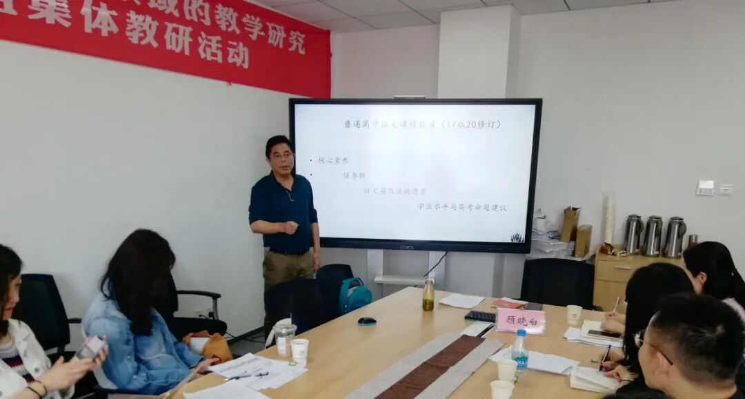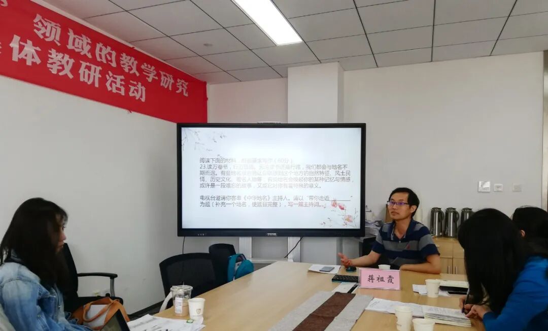 苏州市教育科学研究院蒋祖霞老师以《让学习发生——谈语文课堂中学生的学》为主题,作教学点评和专题培训。蒋老师强调目前的语文课堂要以学生、学习为中心,老师要起到激发、铺垫、铺路、成就学生的作用。他以丰富翔实的案例,来解释何为真实、富有意义的语文实践活动情境,启发老师们要以合理具体的情境任务让核心素养落地生根。