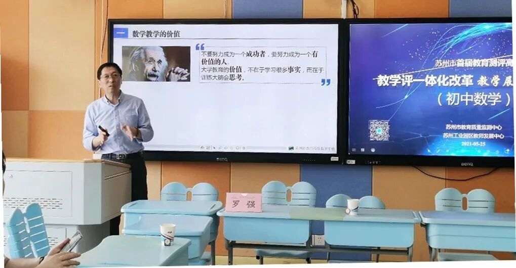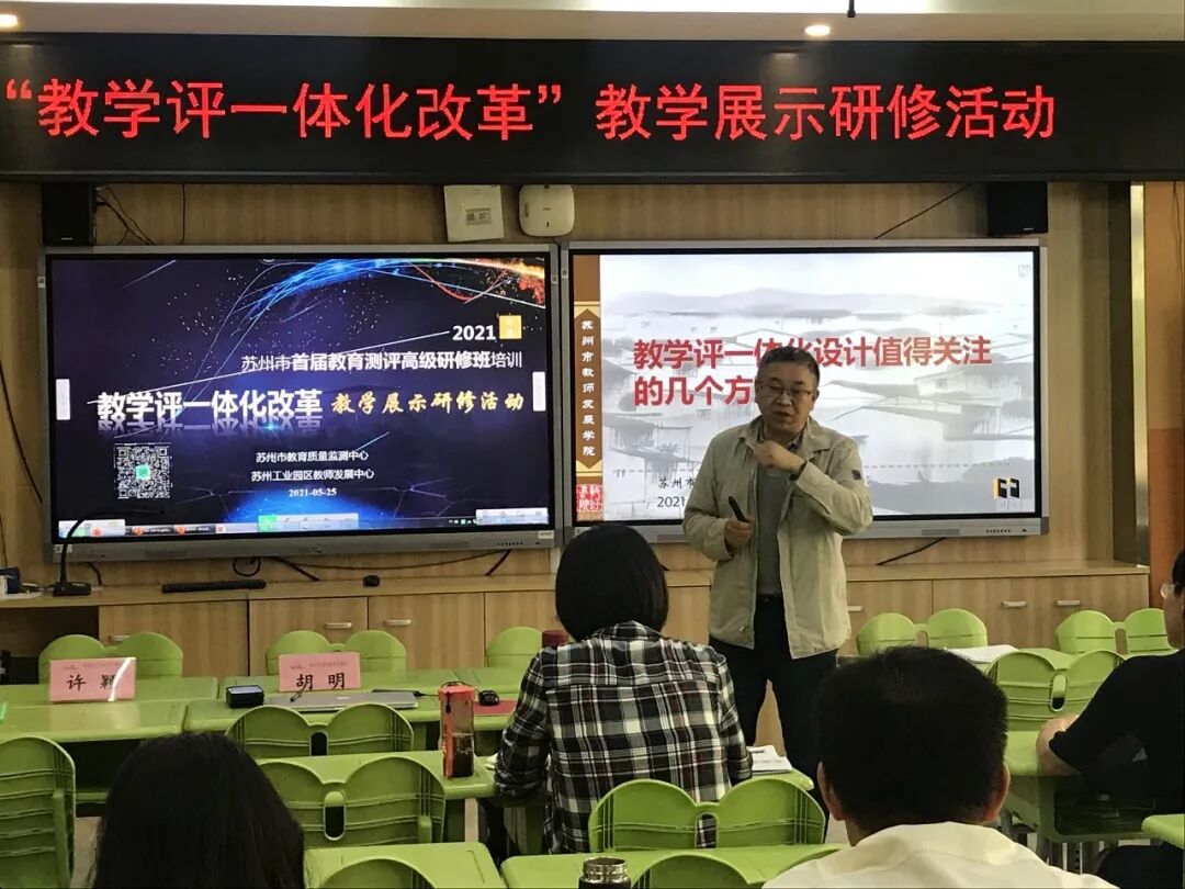 为进一步提高我市课堂教学质量与评价改革水平,促进教师在教学过程中不断反思以及完善自身专业知识和专业技能,5月25日,苏州市教育质量监测中心联合苏州工业园区教师发展中心,在苏州工业园区星汇学校与苏州工业园区星洋学校两所学校,同时举办了苏州市首届教育测评高级研修班第四次集中研修活动暨“教学评一体化改革”教学展示研修初中组活动。