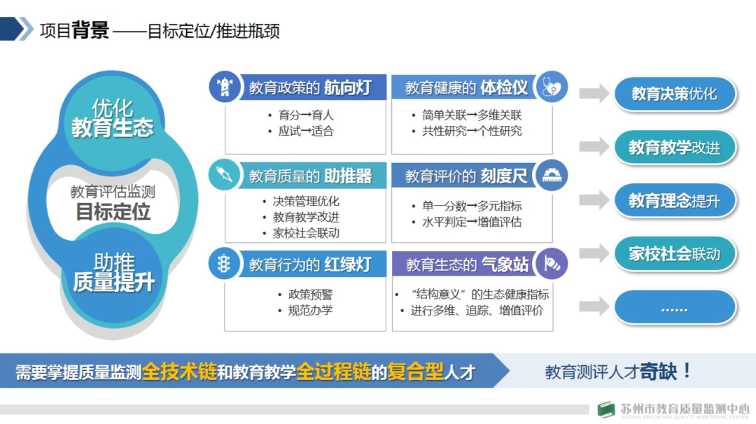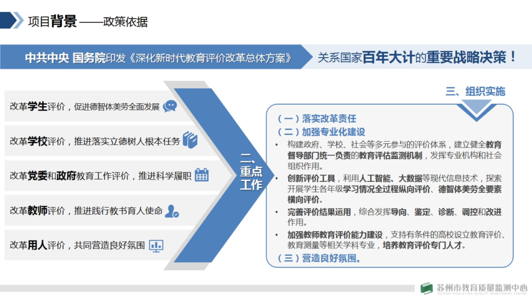 顾主任在讲话中指出,有什么样的评价,就有什么样的导向。10月13日,中共中央国务院印发《深化新时代教育评价改革总体方案》,这是国家层面关于教育全领域一系列问题改革方面的纲领性文件,教育测评专业队伍建设是评价改革的关键。今天苏州市首届教育测评高级研修班的开班,意义深远。它是推动苏州市教育测评人才队伍建设、促进青年骨干教师教育测评专业能力发展的重要举措,将为未来我市推进教育评价改革注入新的活力。