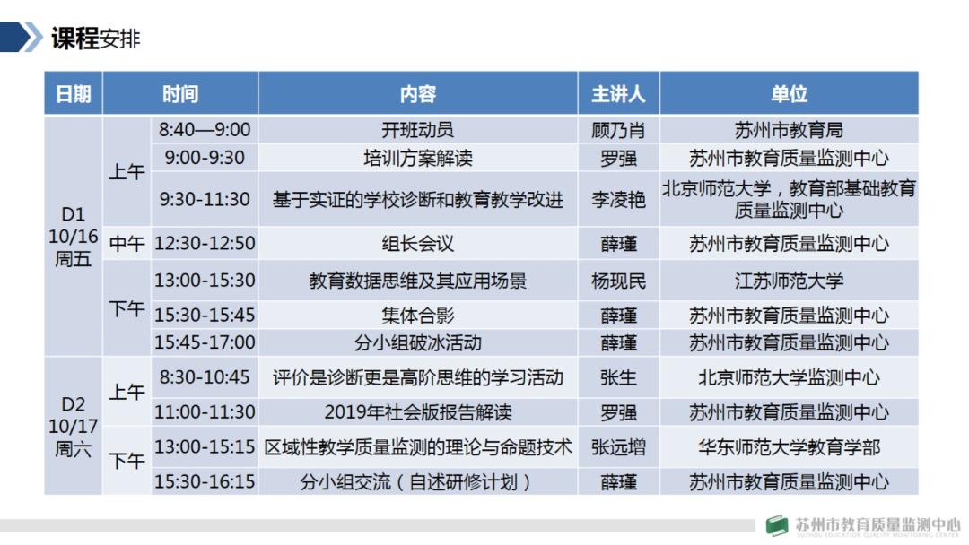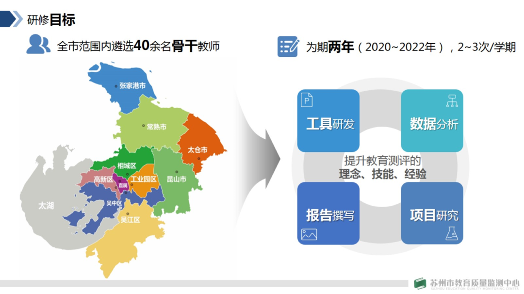 10月16日,苏州市首届教育测评高级研修班正式开班。通过各市(区)推荐上报,市教育质量监测中心在大市遴选出了42位具有潜质的优秀青年骨干教师,作为首届教育测评高级研修班的学员,开展为期两年的培训。