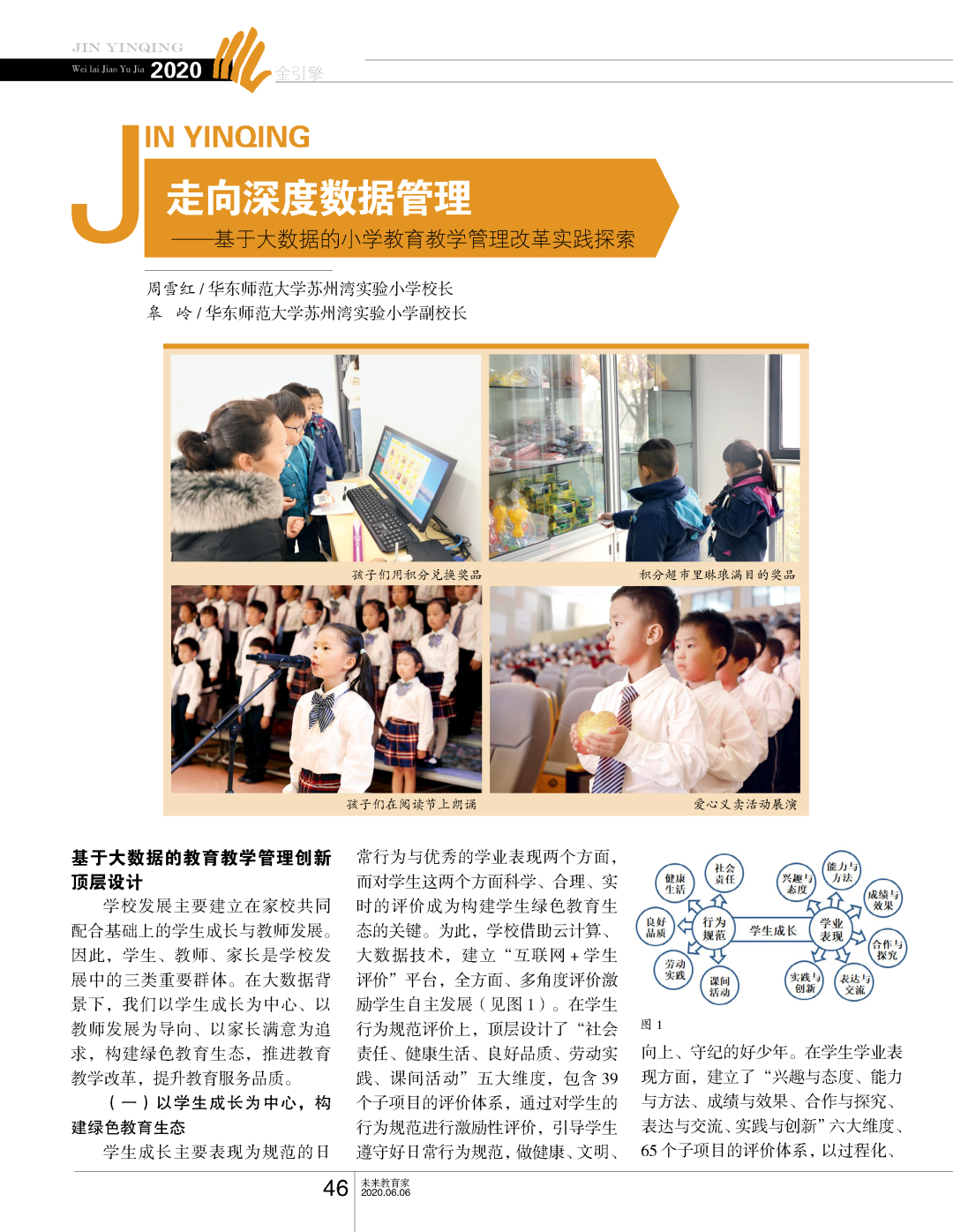 文章授权转自:《未来教育家》2020年6月6日 走向深度数据管理 ——基于大数据的小学教育教学管理改革实践探索 01 学校发展主要建立在家校共同配合基础上的学生成长与教师发展。因此,学生、教师、家长是学校发展中的三类重要群体。在大数据背景下,我们以学生成长为中心、以教师发展为导向、以家长满意为追求,构建绿色教育生态,推进教育教学改革,提升教育服务品质。 (一)以学生成长为中心,构建绿色教育生态 (二)以教师发展为导向,推进教育教学改革 (三)以家长满意为追求,提升教育服务品质 (完整内容见下图) 02 在大数据背景下,借助信息技术使学校实现全样本、大数据的学生、家长问卷调查成为可能,同时也为问卷调查的统计分析、实证诊断提供技术支持。学校在了解教育教学情况的问卷调查中,主要通过监测的准备、调查的实施和结果的应用三个步骤展开。 (一)建立评价维度,研制监测工具 (二)在线问卷调查,实证统计分析 (三)提供精准指导,实现跟进改革 (完整内容见下图) 03 学校行政、班主任、学科教师如何科学评价、激励学生,促进他们步入自我成长的快车道,这是基层学校教育教学管理绕不过的一道门槛。在大数据背景下,我们积极尝试建立闭环式的促进学生自我成长评价激励体系,从系统构建、过程实操,到结果应用等方面创新实践,在促进学生自我成长方面取得了一定实效。 (一)构建智能评价系统 以学生行为规范与学业表现为内容、以数据思维与成长建模为创新对学生成长评分赋能,利用学校先进的云平台,建构跨终端、全时空、多角度的学生成长智能评价系统(见图5)。 (完整内容见下图) (二)开展实时评价操作 跨终端是学生成长智能评价系统的一大亮点。教师可以凭借专用“魔法”电子教棒、手机、交互教学终端、平板电脑、台式电脑等多个终端方便快捷地对学生进行全方位评价,有利于平台及时收集学生成长的各种过程性数据。实时性是学生成长智能评价系统的又一大亮点。 (三)应用激励评价结果 如何进一步发挥学生通过激励评价积累到成长分值的价值,不断激发学生积极表现呢?这是评价激励系统亟待解决的一个问题。在充分调研与合理设计的基础上,我们形成了“建立标准、评价积分、兑换积分”的闭环式激励系统,充分应用评价结果,促动学生不断地积极表现、努力进取。学生通过一个阶段的个人行规与学习表现,积累到一定的分值,可以根据学生个人需求,到学校积分兑换机前,兑换心爱的奖品,奖品有学具、文具等物质奖励,也有“与校长共进午餐”“与副校长漫步校园”等精神奖励。 (完整内容见下图) 原创文章推荐 1 2 3 4 5 【苏州监测大数据揭秘】专题四:艺术、体育、劳动的态度和习惯好的学生,主观幸福感更高,学业成绩更好! 教育测评论文系列文章 1 2 3 4 5 6 7 8 9 10