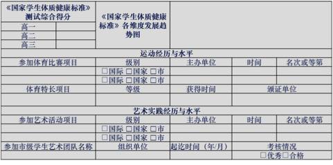 这一部分包括:(市级)体育比赛成绩,体育特长项目等级,参加(市级)学生艺术团体,参加(市级)艺术活动得奖情况