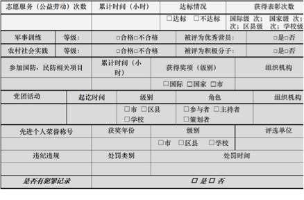 这一部分包括:志愿服务(公益劳动)次数和累计时间,先进个人荣誉称号)