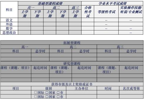 这一部分包括:学期成绩,学业水平考试成绩,研究课题项目。