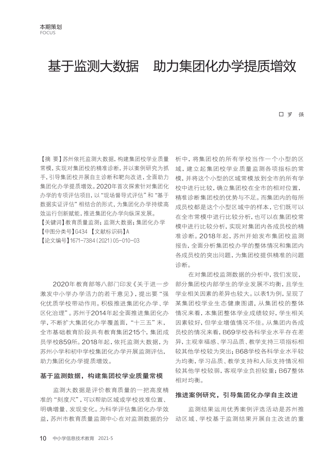【关键词】教育质量监测;监测大数据;集团化办学