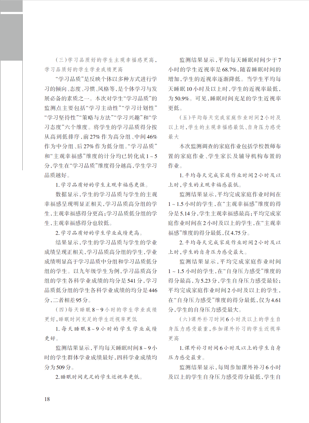 (四)每天睡眠8~9小时的学生学业成绩更好,睡眠时间充足的学生近视率更低