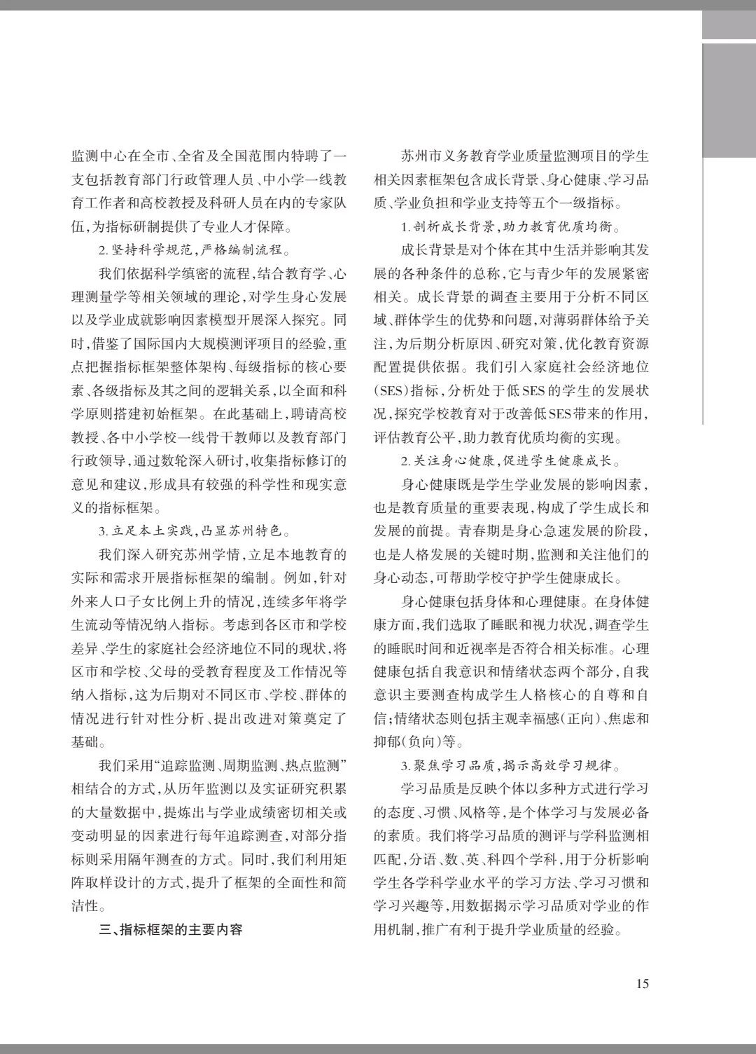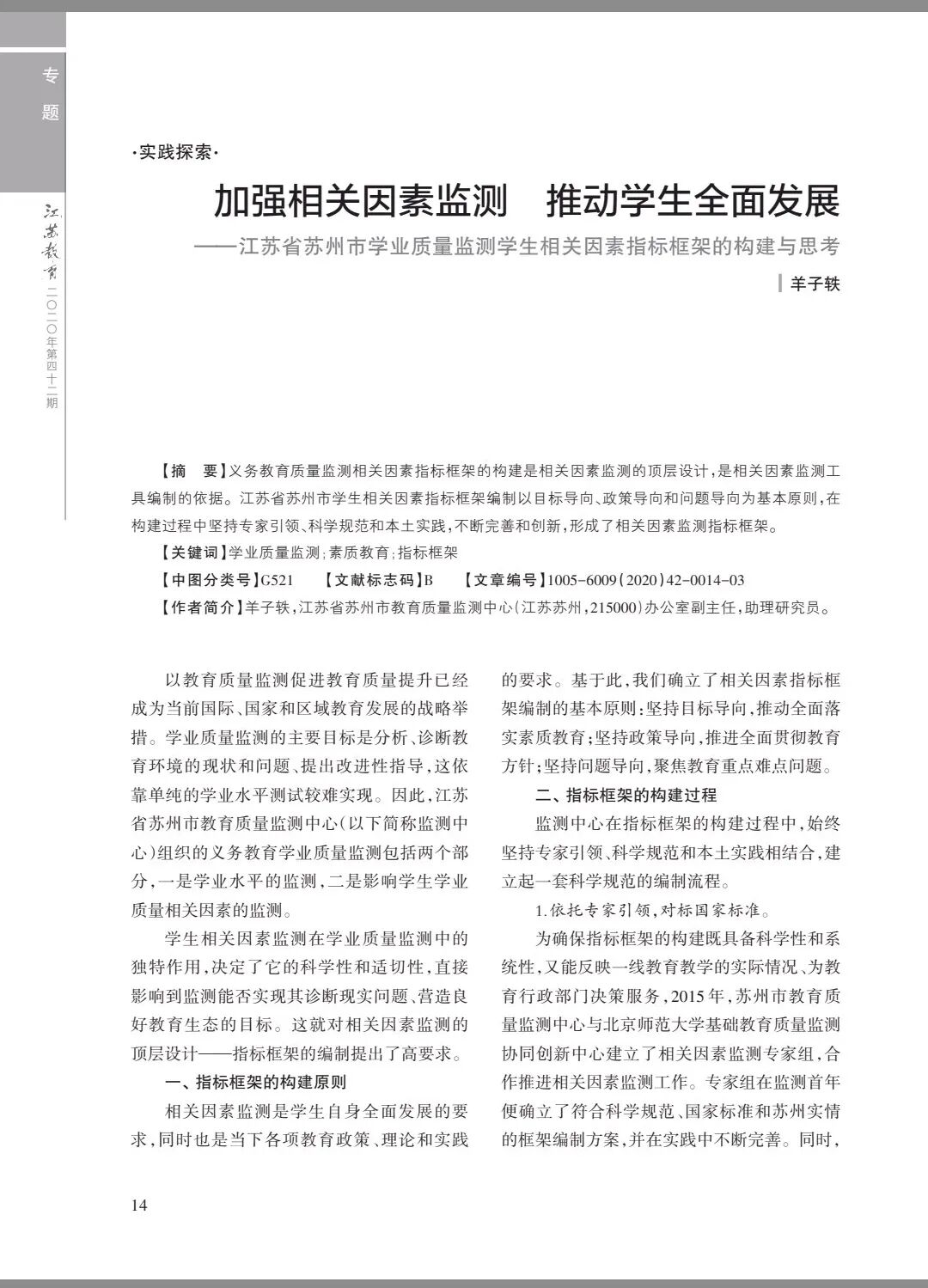 — —江苏省苏州市学业质量监测学生相关因素指标框架的构建与思考