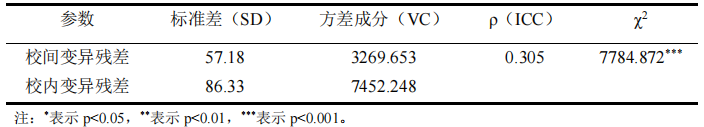 建立多层线性模型分析,学生层面为第一水平变量,学校层面为第二水平变量,构建模型如下: