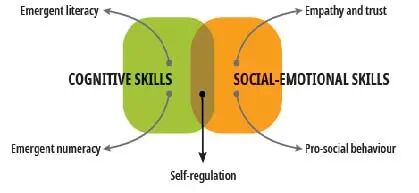 早期社会情感技能包括情绪自控制技能、亲社会行为和同理心等。儿童社会情感技能的发展与他们的认知发展和整体幸福感密不可分。神经科学的发展表明,参与情绪调节的神经回路与认知处理相关的神经回路重叠,所以当情绪没有得到很好的调节时,认知发展就会受到阻碍。