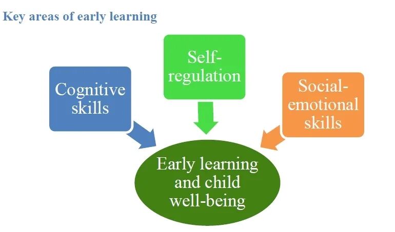 研究发现,虽然早期学习培养的技能都重要,但是一些早期技能比其他技能更能预测他们以后的发展,这些技能即为早期的认知技能(特别是早期读写和早期算术)、自我调节和社会情感技能。需要指出的是,早期学习的这三个领域尽管对儿童未来发展有独立的影响,但它们单独不足以预测未来发展,早期学习是这三个领域之间的持续互动,如果没有这种互动,儿童发展可能会受到阻碍。在上述三个领域进展良好的儿童,很大可能在学校表现良好,实现自己的愿望,实现经济独立,过上幸福、健康的生活。