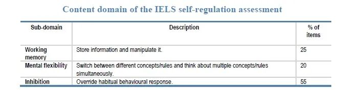 由于早期认知技能、自我调节技能和社会情感技能最能预测儿童以后的积极成果,所以OECD“国际早期学习和儿童幸福研究”认为评估早期学习应该也聚焦于这三个领域,并设计了评估框架。