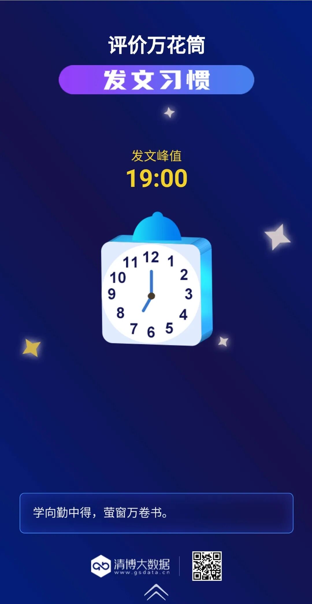 2020年,“评价万花筒”发文时间一般在晚上19点~20点,累计294篇(40%)集中在19点这一时段。