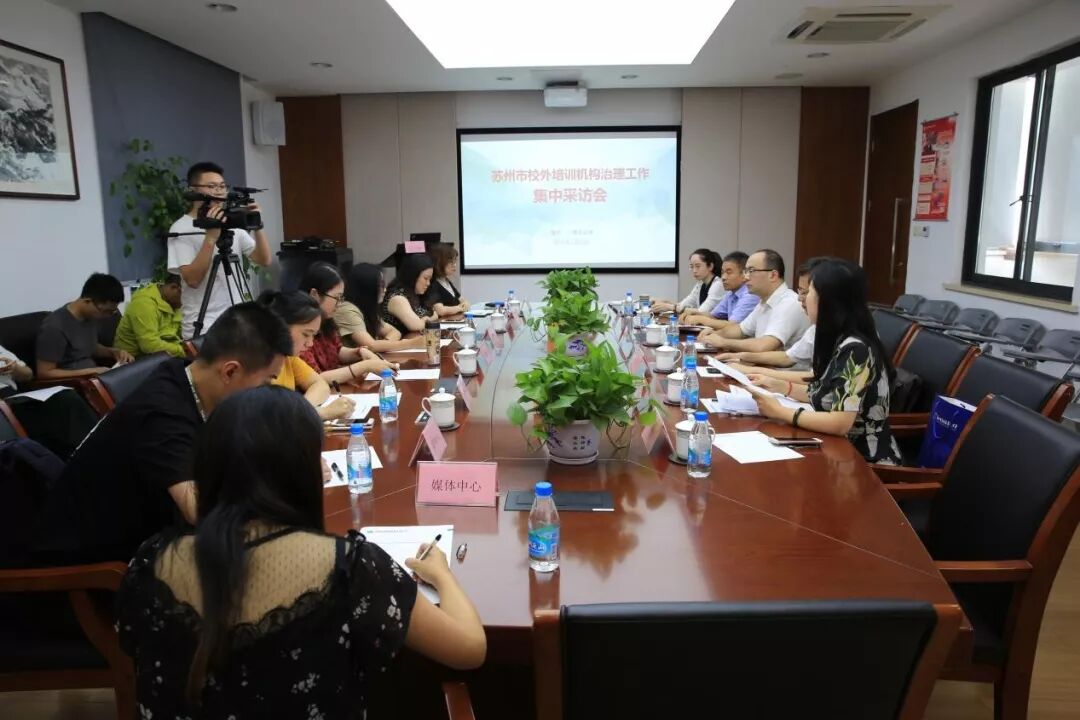 2018年7月16日下午,苏州市校外培训机构治理专题集中采访会在市教育质量监测中心三楼会议室召开,本次采访会由苏州市教育局组织。