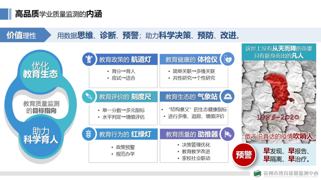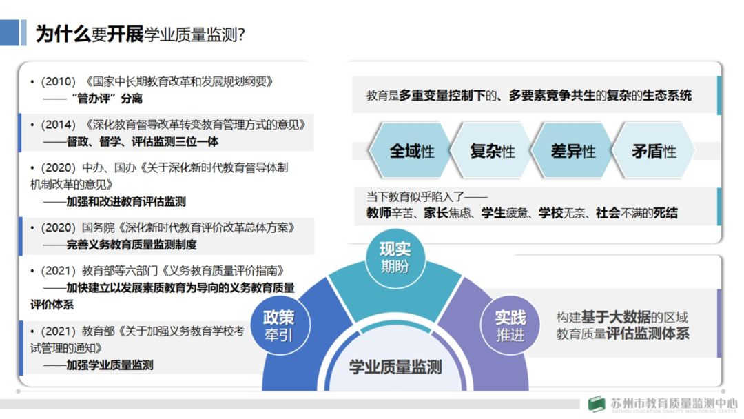 罗主任认为开展学业质量监测可以通过监测大数据对区域教育生态进行全面健康体检,把脉教育时代病,破解制约当下教育发展的现实难题。