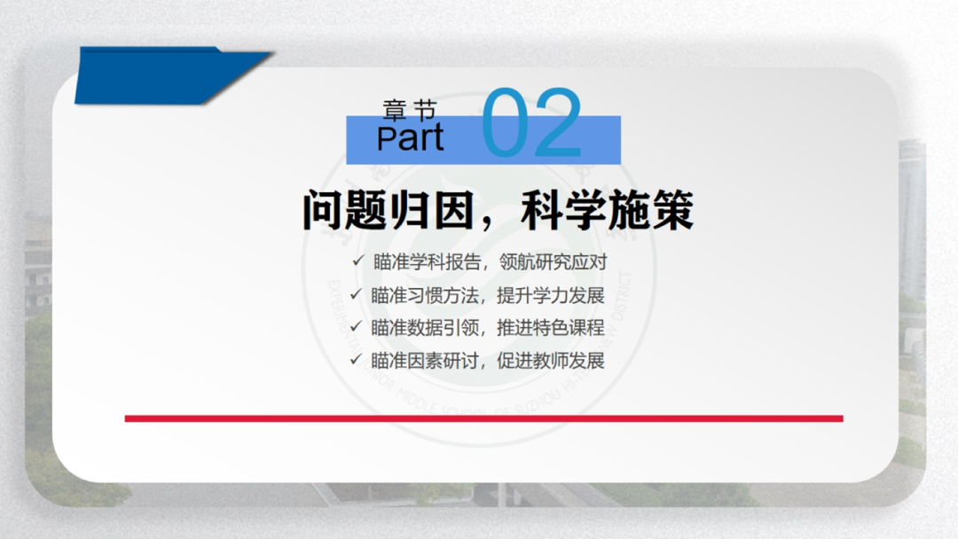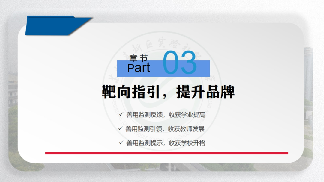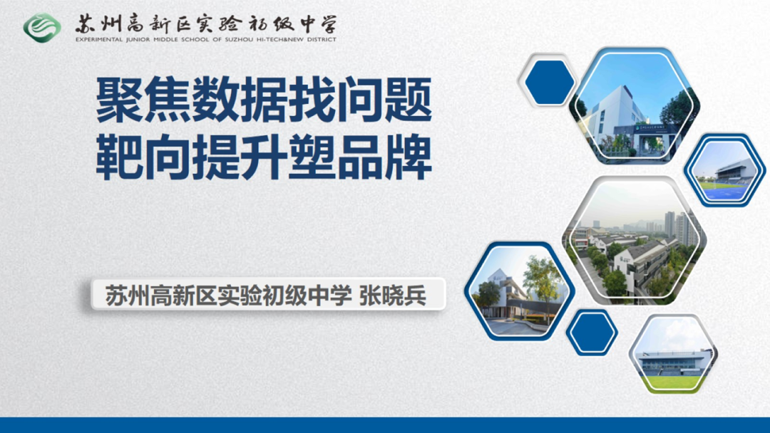 作为苏州学校应用监测改进教育教学的典范,苏州高新区实验初级中学张晓兵老师在培训会上作了《聚焦数据找问题 靶向提升塑品牌》的分享,他从聚焦数据,精准定位;问题指向,科学施策;靶向指引,提升品牌三个方面进行了分享。