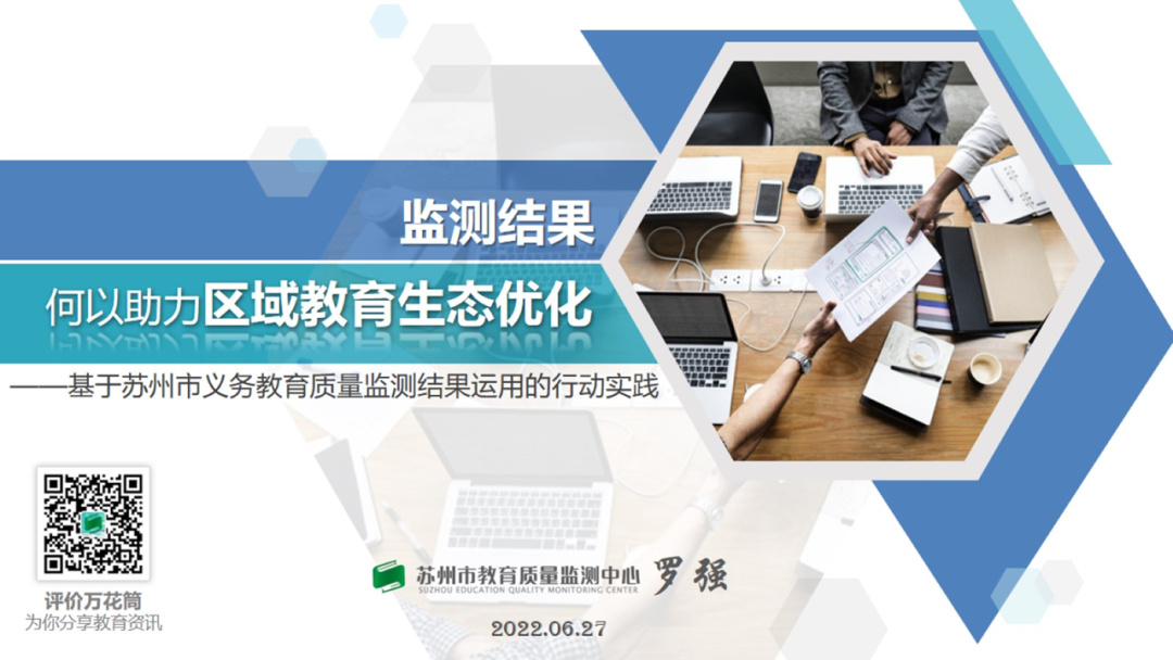 苏州市教育质量监测中心罗强主任作了题为《监测结果何以助力区域教育生态优化——基于苏州市义务教育质量监测结果运用的行动实践》主旨报告。罗主任从为什么要开展学业质量监测、如何开展学业质量监测;高品质学业质量监测的内涵;高品质学业质量监测的苏州实践;在数据化教育生态中挖掘教育真相;构建基于监测数据的自我改进系统五个方面分享了苏州经验。