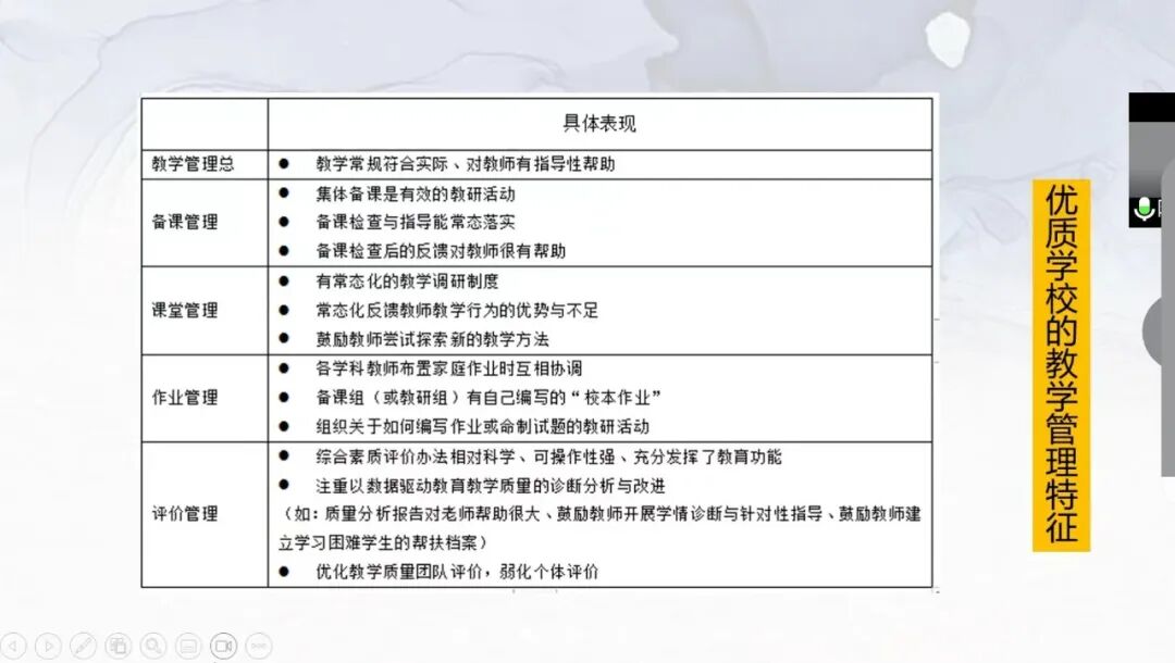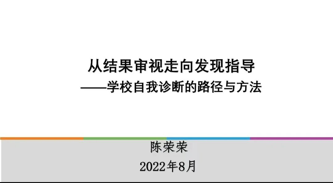 陈荣荣老师讲授的《从结果审视走向发现指导—学校自我诊断的路径与方法》,解答了我在此之前对“学校如何开展自我诊断”的困惑。在与陈老师问答互动中,我明白了学校是否与第三方合作并不是学校自我诊断路径的核心问题,关键在于顶层设计,即本校的需求是什么,这才是宗旨和关键。