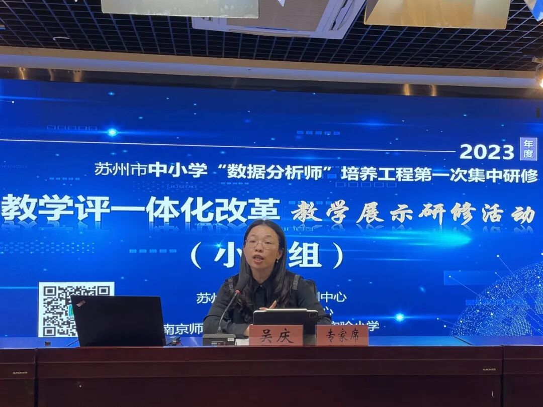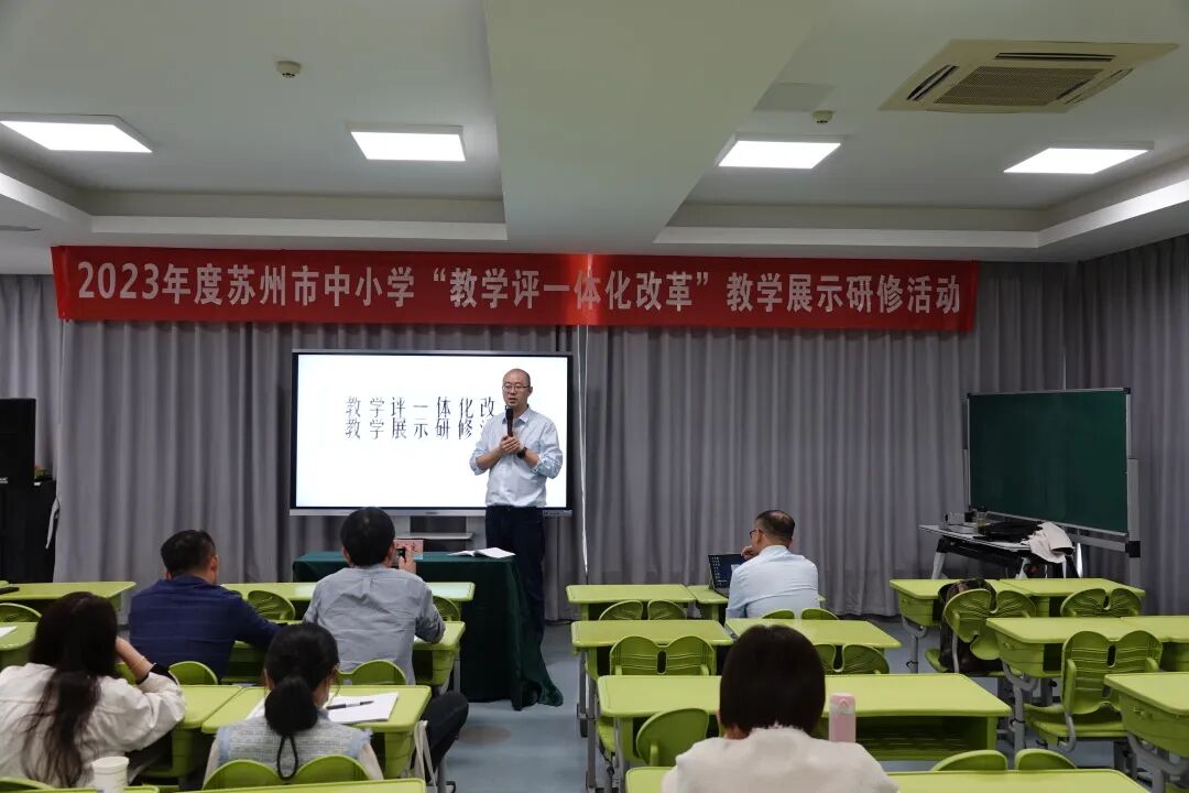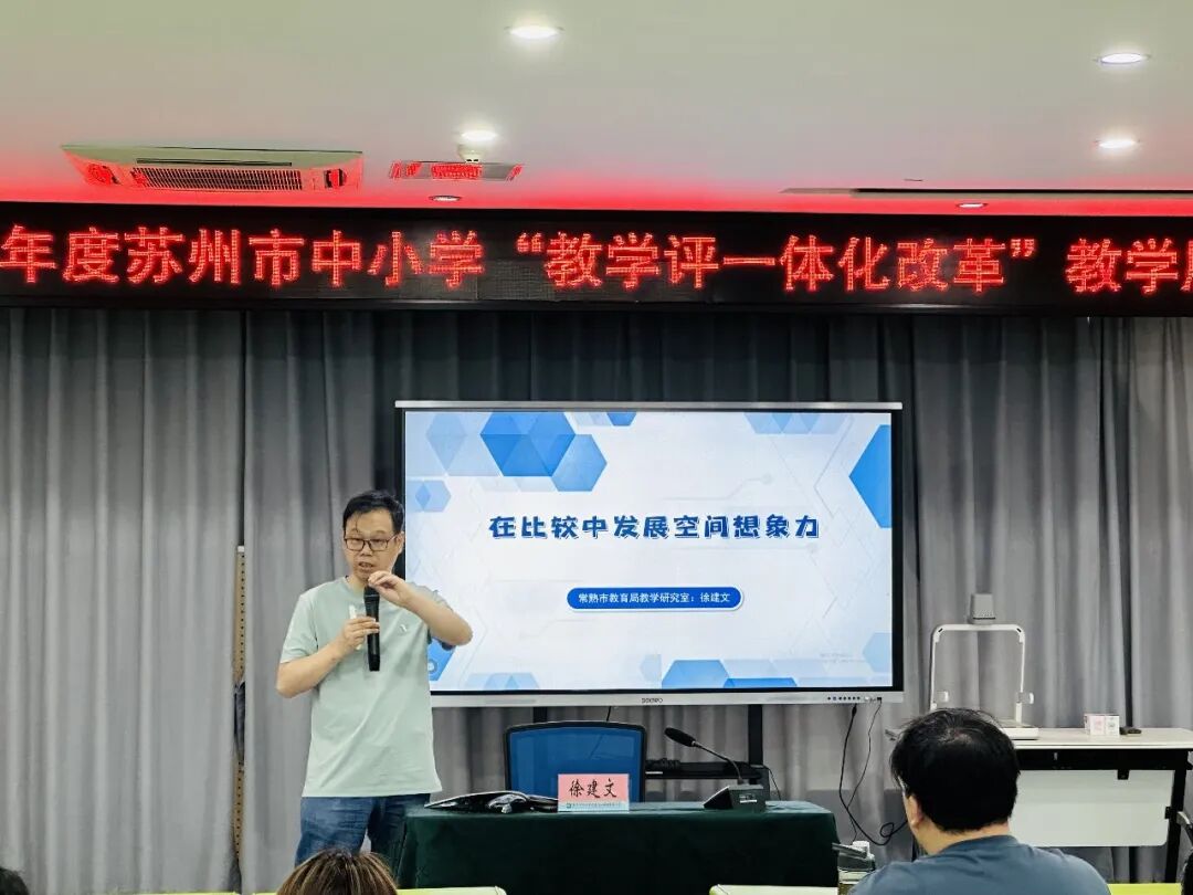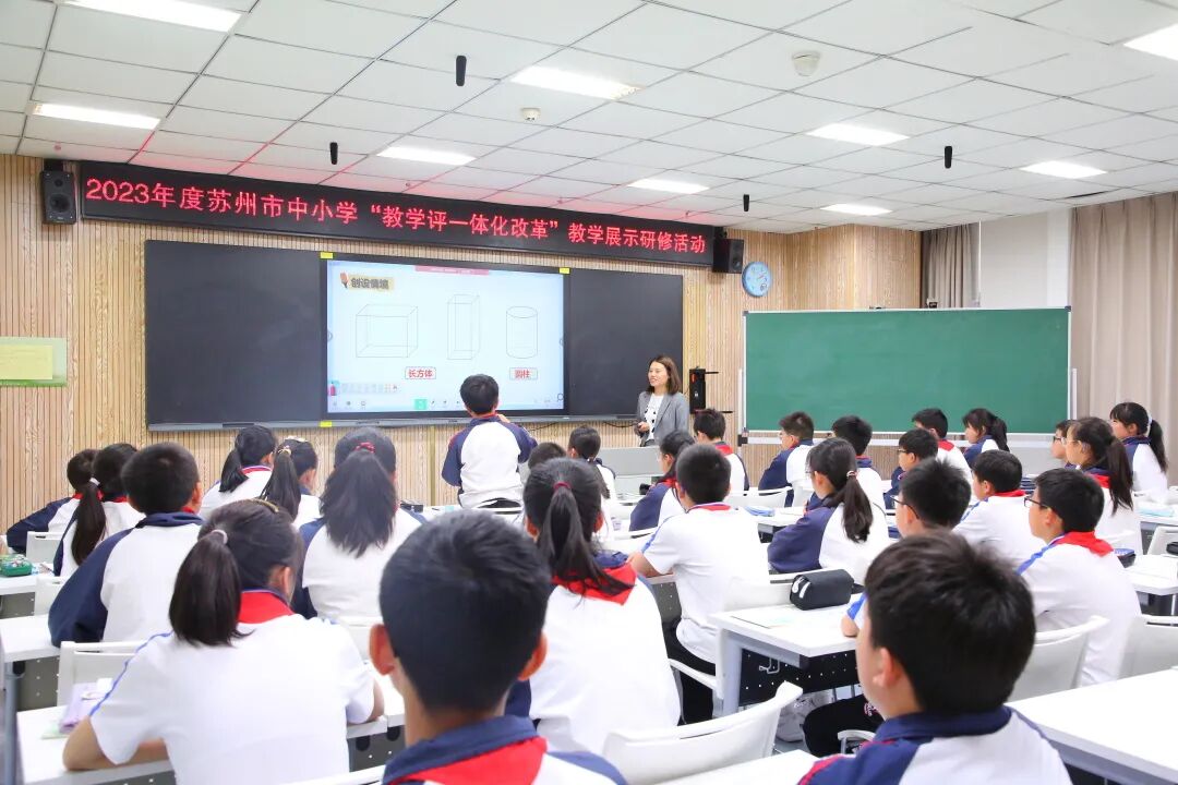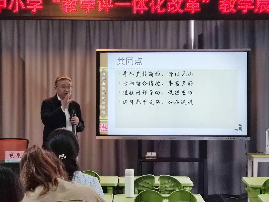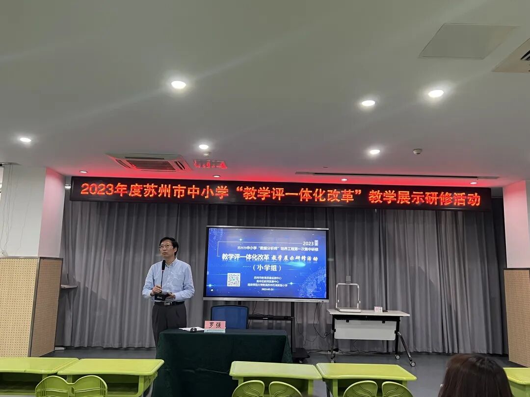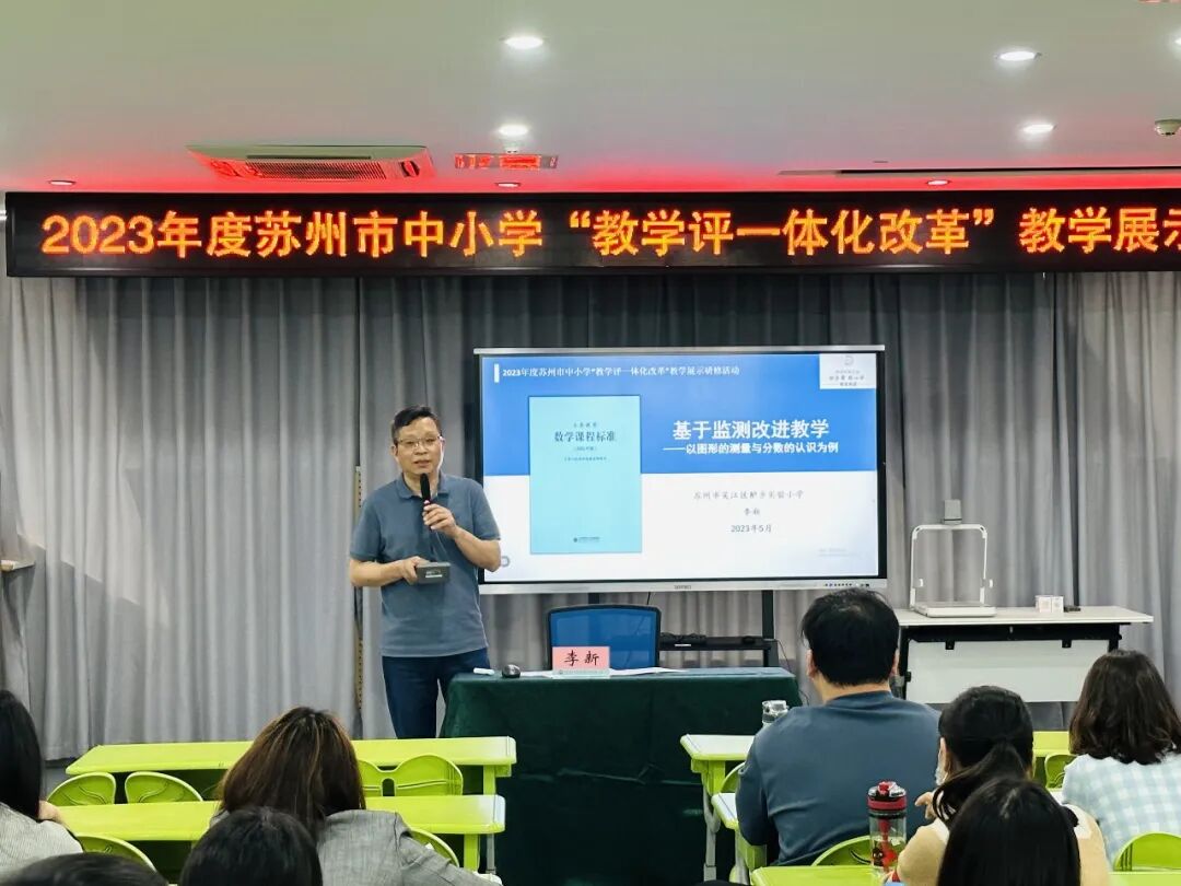 活动介绍 为推动苏州市教育测评人才高地建设,促进青年骨干教师在教育测评理论与实践方面的专业发展,5月24日,苏州市教育质量监测中心联合吴中区教师发展中心,在南京师范大学附属苏州石湖实验小学,举办了2023年度苏州市中小学“数据分析师”培养工程第一次集中研修暨“教学评一体化改革”教学展示研修活动。 本次活动邀请了2023年度苏州市中小学“数据分析师”培养工程小学组学员和来自苏州各县市区的部分骨干教师进行课堂展示,上课教师达30人。老师们以近三年苏州市义务教育学业质量监测典型例题为载体进行专题授课,上课科目包括语文、数学、英语和科学四门学科。此外,活动还邀请了11位各学科领域的专家对老师们的上课情况进行点评与指导,并围绕活动主题展开了专题讲座。 0 1 语文分会场 张家港市合兴小学沈志峰执教《非连续性文本阅读指导》,太仓市经贸小学王烟蒙执教《非连续性阅读指导》,苏州市吴中区宝带实验小学荀春花执教《小说阅读指导》,吴中区苏苑实验小学周超执教《经典古诗文阅读积累指导》,苏州市平江实验学校殷业凤执教《浅易文言文阅读策略梳理》,张家港市福前实验小学胡思运执教《文言文解题学习》,张家港市城南小学乔蕾执教《小古文阅读指导》,昆山市信义小学邹怡莹执教《文言文阅读指导》,苏州市相城区文征明实验小学顾盛栋执教《文言之美:指向学生学习生活品质》。 << 滑动查看下一张图片 >> 苏州高新区枫桥中心小学校张忠艳专家对上课老师进行了精彩点评与专业指导,并作了题为《素养导向下的“教学评一体化”实践探究》的主题讲座。张校长详细阐释了“教-学-评一体化”课堂教学体系,并围绕“学习目标的始终在场、课堂评价的全程跟进、教学活动的板块推进”三点进行全面指导。张校长强调教师要重新认识学与教的关系,坚持学生立场。衡量教师专业实践的业绩应该是学生学会什么、何以学会,而不是教师有没有教、怎样教。最后,张校长分享了以学科实践为抓手,构建实践型的学科育人方式。她指出,教师要注重身体参与和亲身经历,倡导基于真实情境、问题、任务、项目进行学习。 苏州工业园区教师发展中心魏斯化专家以《古诗文阅读命题与教学策略》为主题,结合几位老师的上课情况,进行了针对性的点评与培训。魏老师结合近几年市测与省测古诗文默写题型的情境、考查内容以及与教材内容的关联,分享了古诗文默写命题与教学策略。魏老师指出,在命题取向上,应坚持“立足课内,迁移课外”;在考点设置上,选择能体现古诗文学习核心价值的内容;在命题取材上,考虑与学生学习程度的适切性。此外,魏老师提醒教师要警惕超出课程标准的命题与作业。 苏州市吴中区教研室吴庆专家首先对老师的教学展示进行了专业点评与指导,并作了《新课标理念下的小学语文课堂教学评价探析》主题分享。她认为,课堂教学评价可帮助教师掌握学生的发展情况,并强调新课标的语文课堂教学评价理念包括:课堂教学评价要以情境为载体,促进四类语文实践活动的融通;课堂教学评价要指向核心素养的发展,关注四个学段的衔接;课堂教学评价要采取综合开放的评价方式,重视记录学生的个体成长。此外,吴老师还分享了基于课程标准的课堂教学评价流程。 0 2 数学分会场 苏州工业园区东沙湖小学王杰执教《比大小》,苏州工业园区星洲小学倪静执教《周长面积复习课》,苏州市阳山实验小学校俞杨菁执教《小小旋转大大乾坤》,苏州市吴江区鲈乡实验小学姚雅洁执教《平面图形的面积复习指导》,苏州市吴中区越溪实验小学李丽执教《从生活中的分数问题想起》,苏州工业园区胜浦实验小学周丽执教《立体图形的体积复习指导》,昆山市实验小学陆逸茹执教《交通路口中的数学问题》,苏州工业园区星洲小学唐洁执教《统计与概率复习指导》,苏州市沧浪实验小学校包涵执教《思维的价值》。 << 滑动查看下一张图片 >> 常熟市教育局教学研究室徐建文专家首先对三位老师的授课内容进行精彩点评,随后结合三位老师的选题,做了《在比较中发展空间想象力》的专题讲座。他在讲座中介绍了空间想象力的内涵、培养要求以及培养路径等,并强调“数学教学的根本目标是借助数学知识的载体,让学生感悟或掌握其中的思考元素,进而促进学生思维的发展”。 苏州市吴江区鲈乡实验小学李新专家总结了三位上课老师的共同点,如都重视课堂的基本结构、重视学生主体作用的发挥、重视“三会”核心素养的达成等。随后他以《基于监测改进教学——以图形的测量与分数的认识为例》为题,进行专题分享。他强调,教师在教学中要“把握图形测量的教学内容与育人价值”“把握图形测量的内容要求与学业要求”“把握内容本质,促进深度学习,培育关键能力”。 苏州市吴中区东山实验小学吴金根专家就三位老师的上课情况进行深刻点评,并做了《赋能学科核心素养,优效教学质量获取路径》的专题讲座。他认为,我们的教育一直行走在变革的路上,教师要对“教”与“学”有深刻的理解和理智的把握,只有研究好课程、研究好自己、研究好学生、研究好课堂,注重实现“教-学-评”一致性,才能真正达到“优效教学”的目标。 苏州市教育评价学会罗强专家认为各位老师能够围绕优质的监