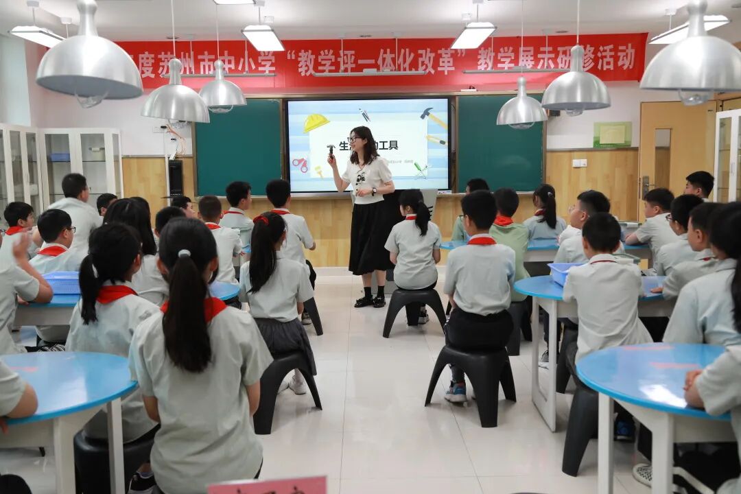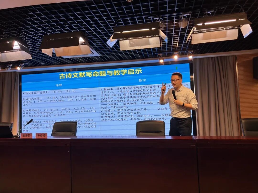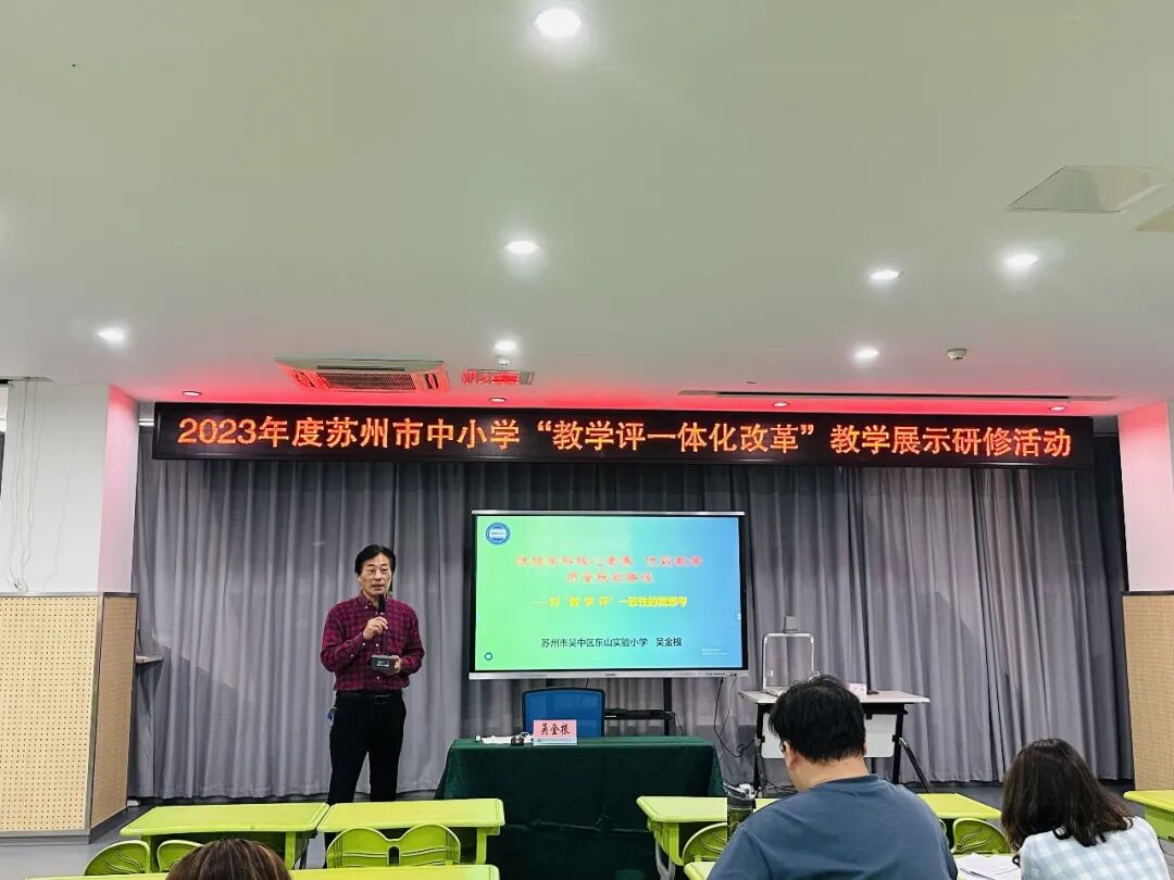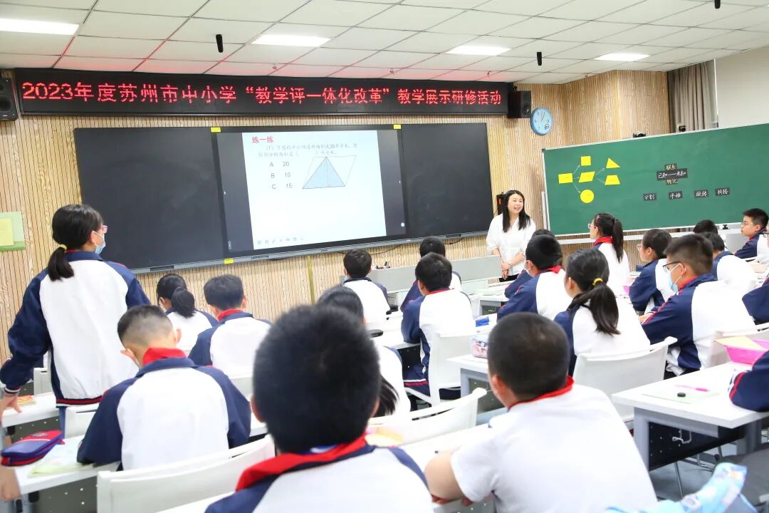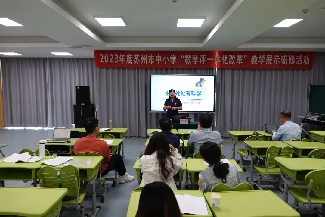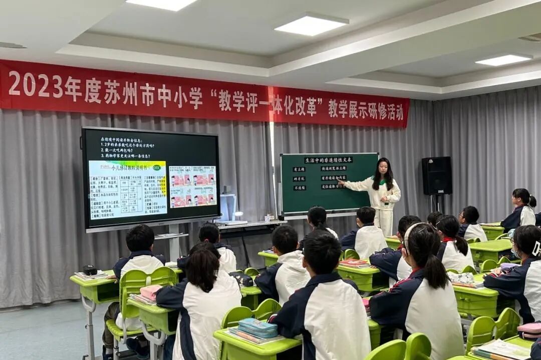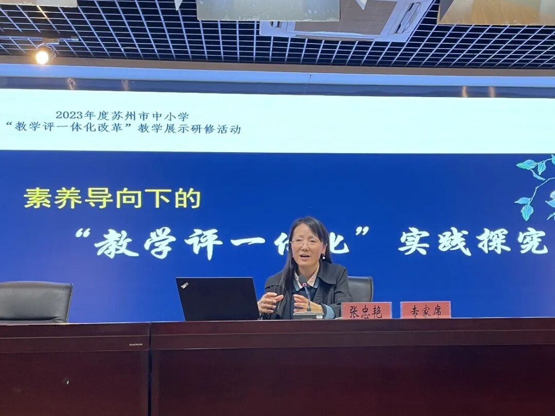 活动介绍 为推动苏州市教育测评人才高地建设,促进青年骨干教师在教育测评理论与实践方面的专业发展,5月24日,苏州市教育质量监测中心联合吴中区教师发展中心,在南京师范大学附属苏州石湖实验小学,举办了2023年度苏州市中小学“数据分析师”培养工程第一次集中研修暨“教学评一体化改革”教学展示研修活动。 本次活动邀请了2023年度苏州市中小学“数据分析师”培养工程小学组学员和来自苏州各县市区的部分骨干教师进行课堂展示,上课教师达30人。老师们以近三年苏州市义务教育学业质量监测典型例题为载体进行专题授课,上课科目包括语文、数学、英语和科学四门学科。此外,活动还邀请了11位各学科领域的专家对老师们的上课情况进行点评与指导,并围绕活动主题展开了专题讲座。 0 1 语文分会场 张家港市合兴小学沈志峰执教《非连续性文本阅读指导》,太仓市经贸小学王烟蒙执教《非连续性阅读指导》,苏州市吴中区宝带实验小学荀春花执教《小说阅读指导》,吴中区苏苑实验小学周超执教《经典古诗文阅读积累指导》,苏州市平江实验学校殷业凤执教《浅易文言文阅读策略梳理》,张家港市福前实验小学胡思运执教《文言文解题学习》,张家港市城南小学乔蕾执教《小古文阅读指导》,昆山市信义小学邹怡莹执教《文言文阅读指导》,苏州市相城区文征明实验小学顾盛栋执教《文言之美:指向学生学习生活品质》。 << 滑动查看下一张图片 >> 苏州高新区枫桥中心小学校张忠艳专家对上课老师进行了精彩点评与专业指导,并作了题为《素养导向下的“教学评一体化”实践探究》的主题讲座。张校长详细阐释了“教-学-评一体化”课堂教学体系,并围绕“学习目标的始终在场、课堂评价的全程跟进、教学活动的板块推进”三点进行全面指导。张校长强调教师要重新认识学与教的关系,坚持学生立场。衡量教师专业实践的业绩应该是学生学会什么、何以学会,而不是教师有没有教、怎样教。最后,张校长分享了以学科实践为抓手,构建实践型的学科育人方式。她指出,教师要注重身体参与和亲身经历,倡导基于真实情境、问题、任务、项目进行学习。 苏州工业园区教师发展中心魏斯化专家以《古诗文阅读命题与教学策略》为主题,结合几位老师的上课情况,进行了针对性的点评与培训。魏老师结合近几年市测与省测古诗文默写题型的情境、考查内容以及与教材内容的关联,分享了古诗文默写命题与教学策略。魏老师指出,在命题取向上,应坚持“立足课内,迁移课外”;在考点设置上,选择能体现古诗文学习核心价值的内容;在命题取材上,考虑与学生学习程度的适切性。此外,魏老师提醒教师要警惕超出课程标准的命题与作业。 苏州市吴中区教研室吴庆专家首先对老师的教学展示进行了专业点评与指导,并作了《新课标理念下的小学语文课堂教学评价探析》主题分享。她认为,课堂教学评价可帮助教师掌握学生的发展情况,并强调新课标的语文课堂教学评价理念包括:课堂教学评价要以情境为载体,促进四类语文实践活动的融通;课堂教学评价要指向核心素养的发展,关注四个学段的衔接;课堂教学评价要采取综合开放的评价方式,重视记录学生的个体成长。此外,吴老师还分享了基于课程标准的课堂教学评价流程。 0 2 数学分会场 苏州工业园区东沙湖小学王杰执教《比大小》,苏州工业园区星洲小学倪静执教《周长面积复习课》,苏州市阳山实验小学校俞杨菁执教《小小旋转大大乾坤》,苏州市吴江区鲈乡实验小学姚雅洁执教《平面图形的面积复习指导》,苏州市吴中区越溪实验小学李丽执教《从生活中的分数问题想起》,苏州工业园区胜浦实验小学周丽执教《立体图形的体积复习指导》,昆山市实验小学陆逸茹执教《交通路口中的数学问题》,苏州工业园区星洲小学唐洁执教《统计与概率复习指导》,苏州市沧浪实验小学校包涵执教《思维的价值》。 << 滑动查看下一张图片 >> 常熟市教育局教学研究室徐建文专家首先对三位老师的授课内容进行精彩点评,随后结合三位老师的选题,做了《在比较中发展空间想象力》的专题讲座。他在讲座中介绍了空间想象力的内涵、培养要求以及培养路径等,并强调“数学教学的根本目标是借助数学知识的载体,让学生感悟或掌握其中的思考元素,进而促进学生思维的发展”。 苏州市吴江区鲈乡实验小学李新专家总结了三位上课老师的共同点,如都重视课堂的基本结构、重视学生主体作用的发挥、重视“三会”核心素养的达成等。随后他以《基于监测改进教学——以图形的测量与分数的认识为例》为题,进行专题分享。他强调,教师在教学中要“把握图形测量的教学内容与育人价值”“把握图形测量的内容要求与学业要求”“把握内容本质,促进深度学习,培育关键能力”。 苏州市吴中区东山实验小学吴金根专家就三位老师的上课情况进行深刻点评,并做了《赋能学科核心素养,优效教学质量获取路径》的专题讲座。他认为,我们的教育一直行走在变革的路上,教师要对“教”与“学”有深刻的理解和理智的把握,只有研究好课程、研究好自己、研究好学生、研究好课堂,注重实现“教-学-评”一致性,才能真正达到“优效教学”的目标。 苏州市教育评价学会罗强专家认为各位老师能够围绕优质的监