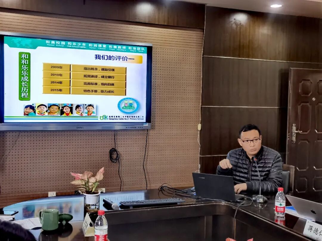 杭州采荷第二小学教育集团的陈春良老师和杭州市夏衍初级中学的陈健老师作为该区域的学校代表分别做了《构建“学评教”发展体系 培育个性化“和乐少年”》与《数据驱动教育教学改进的校本实践》的主题交流。