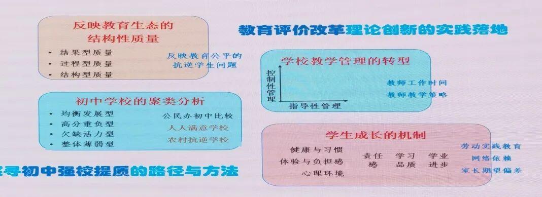 江干区教育评价改革工作进行了多方面的探索。重视“五级增量”评价、实践性学习评价,主体从区域拓展到学校、备课组、教师个人,基于调查结果的二次调研、基于学习质量调查的诊断改进机制。对推动区域教育优质均衡发展,贡献巨大。采荷二小和夏衍初中在校本评价改革方面的实践探索,促进了学生个性化、全面发展,让人叹服。浙江省教育质量评价工作,向外借鉴国际测试的指标和维度,提高先进性;向内研究省内的主要问题,集中解决;向上紧跟国家评价的改革方向和步伐,联动行政力量;向下调动区校和教师的合作参与,推动日常评价。既高屋建瓴、走在前沿,又系统全面、切合实际地推动教育管理方式优化和教育教学发展。