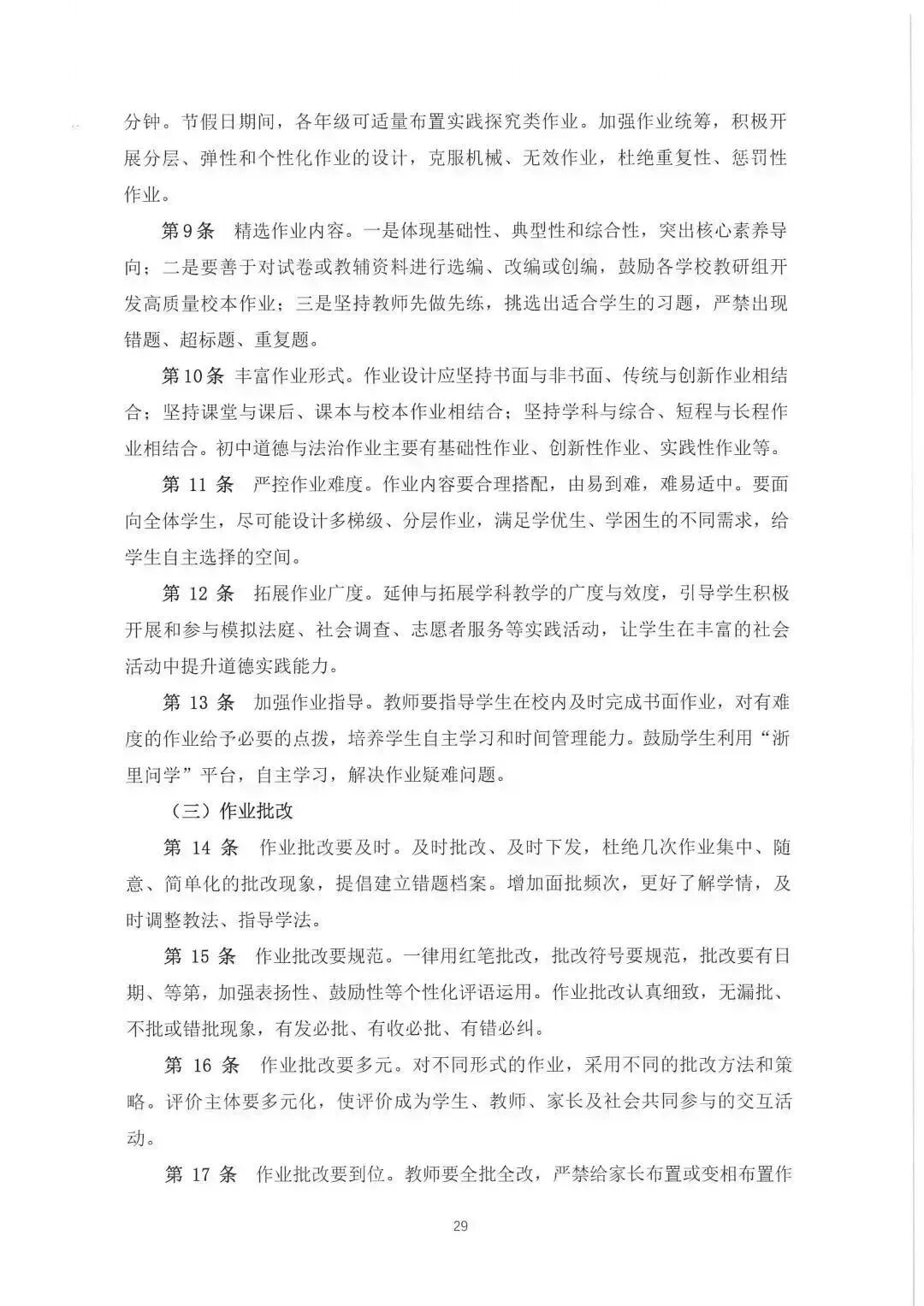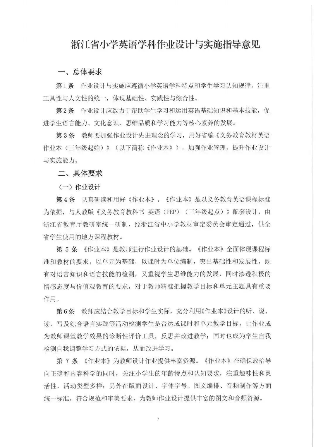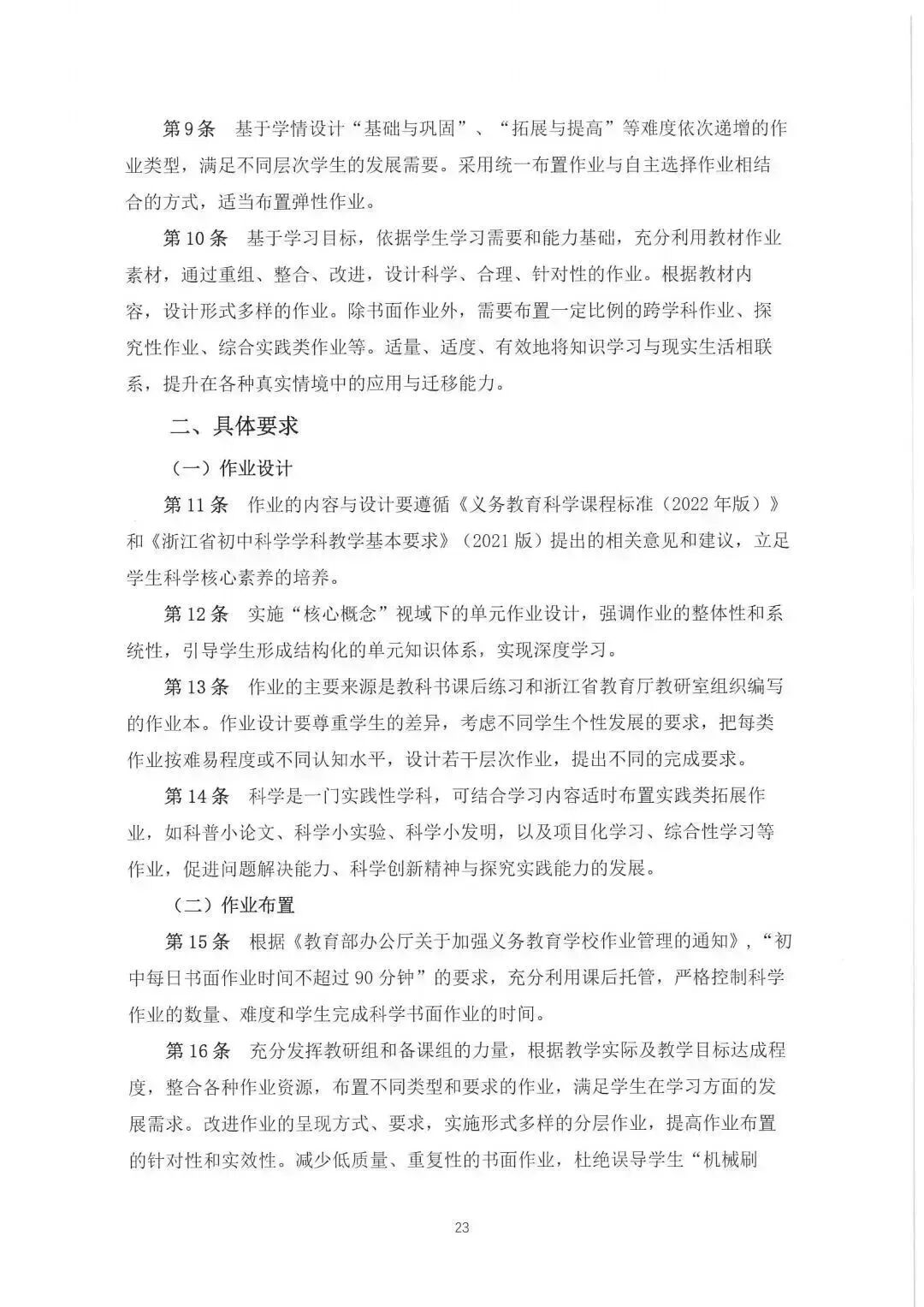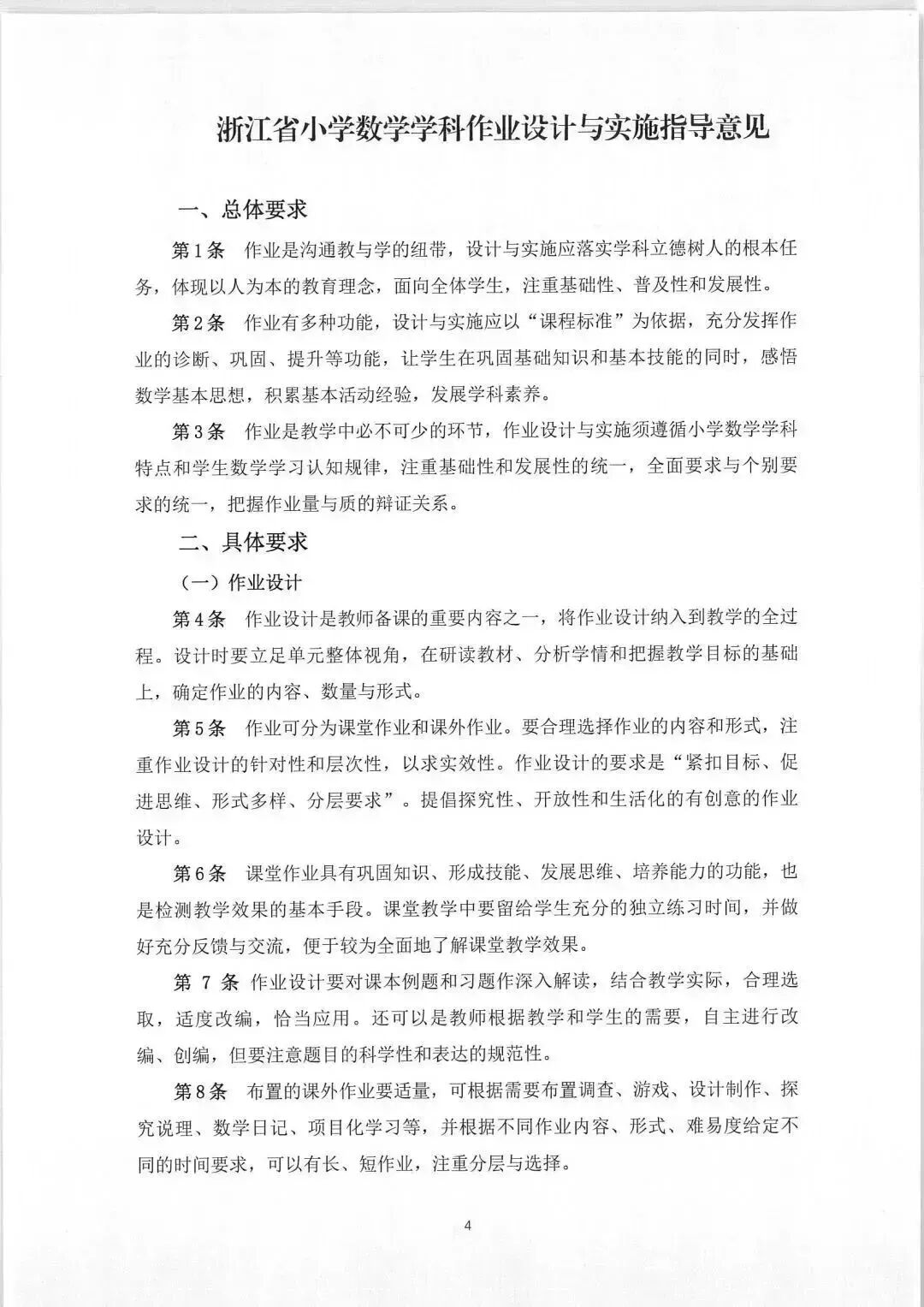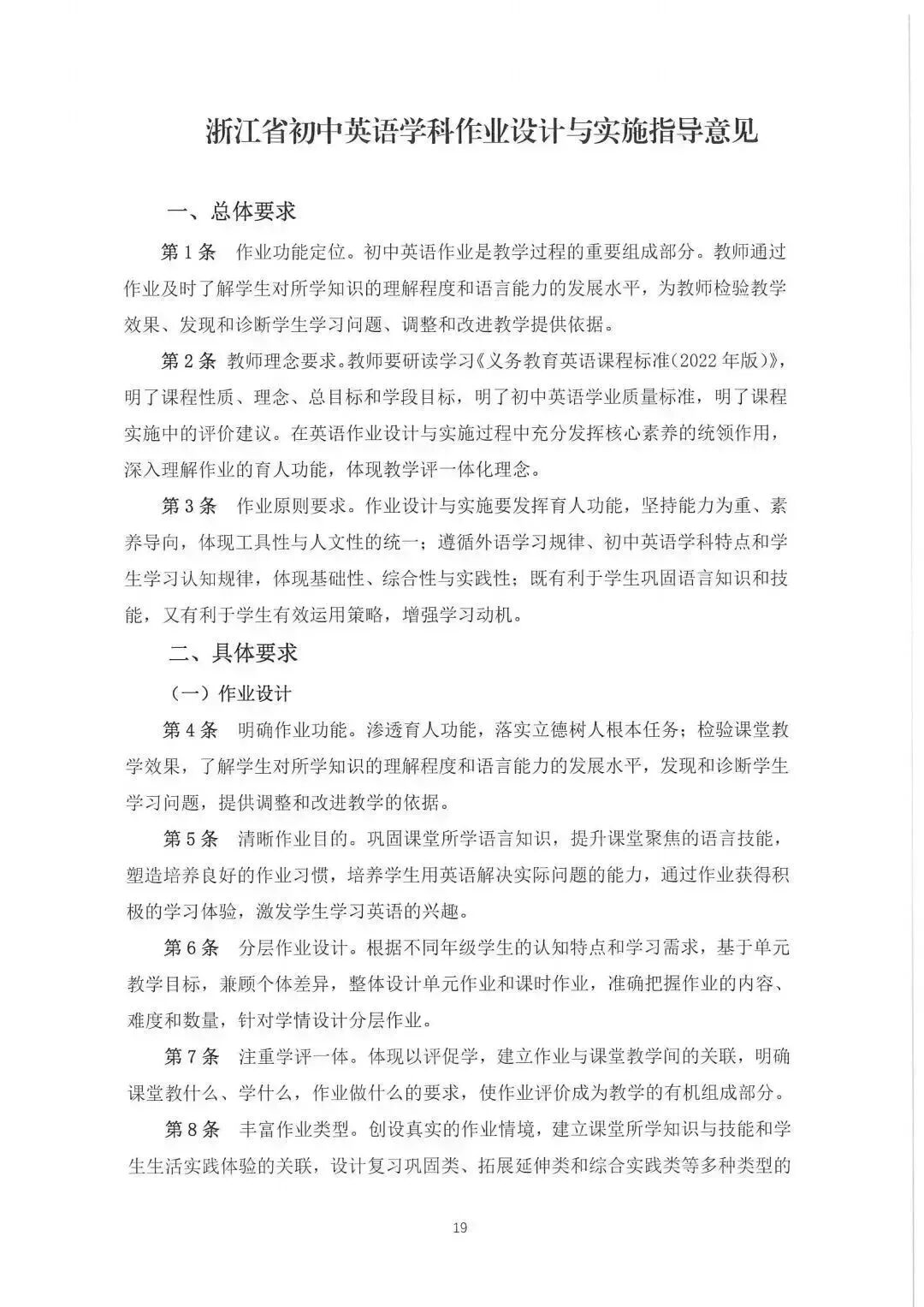 为贯彻中共中央办公厅、国务院办公厅《关于进一步减轻义务教育阶段学生作业负担和校外培训负担的意见》,结合《浙江省义务教育阶段各学科教学基本要求》与《浙江省义务教育阶段学校作业管理指导意见》,切实减轻学生过重课业负担,加强作业设计的针对性和实效性,规范作业管理,提高作业质量,特制定义务教育阶段10门学科的作业设计与实施意见,供各地在教学中参考执行。
