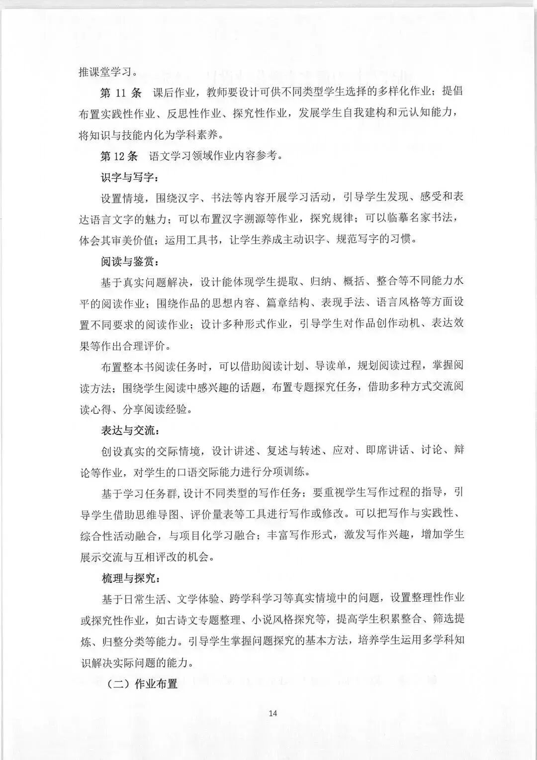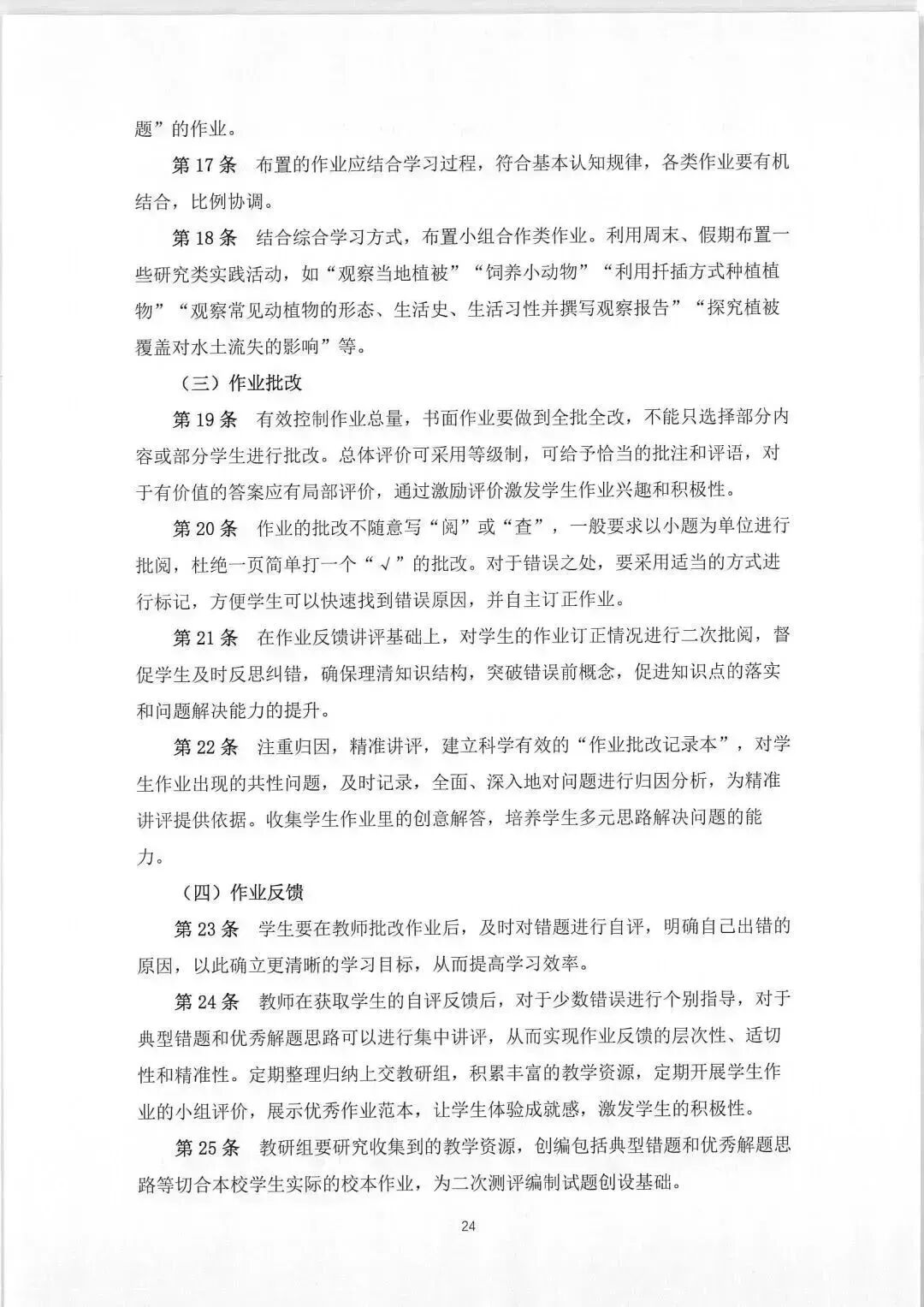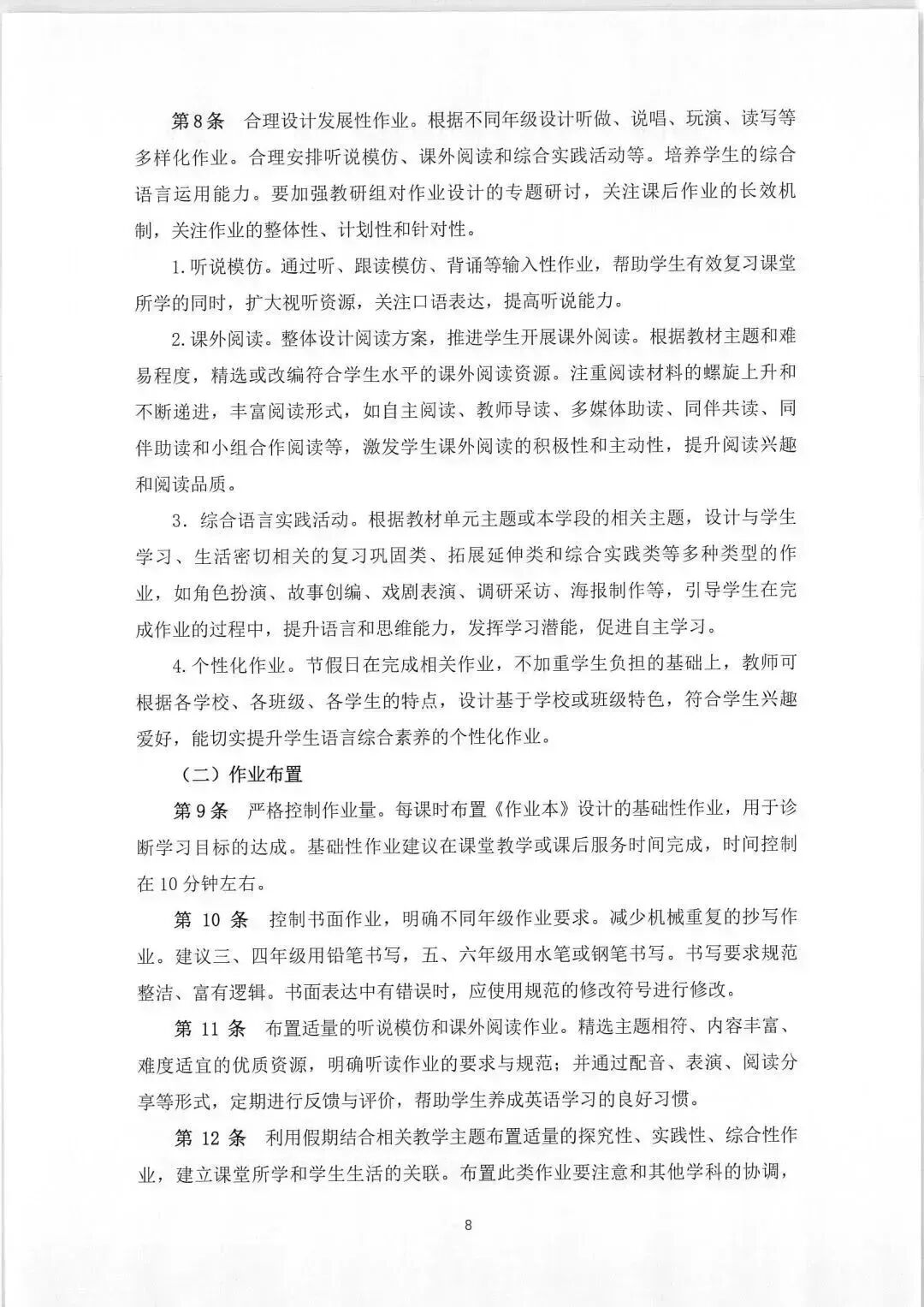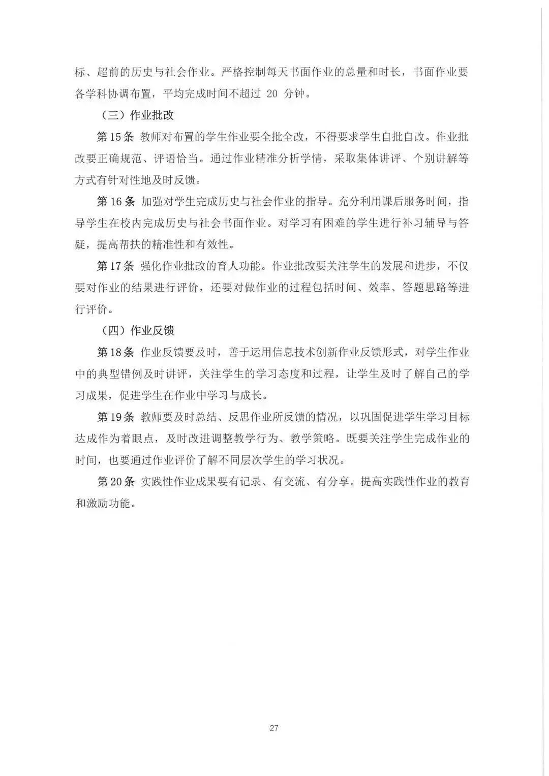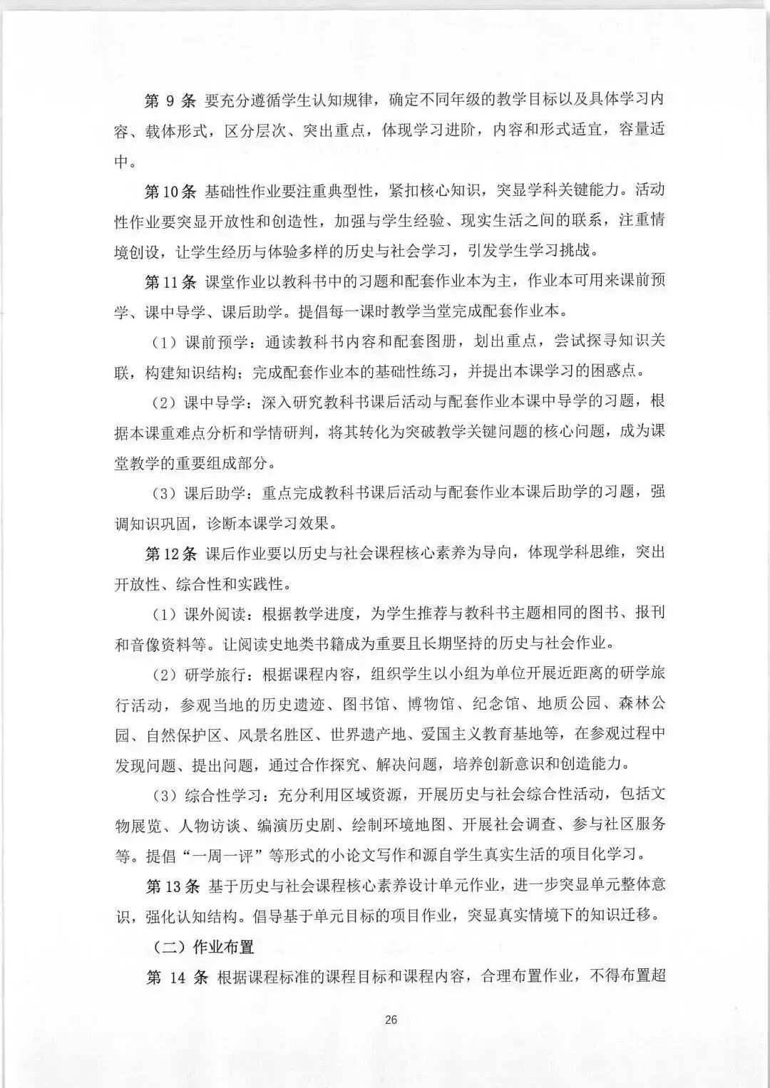 为贯彻中共中央办公厅、国务院办公厅《关于进一步减轻义务教育阶段学生作业负担和校外培训负担的意见》,结合《浙江省义务教育阶段各学科教学基本要求》与《浙江省义务教育阶段学校作业管理指导意见》,切实减轻学生过重课业负担,加强作业设计的针对性和实效性,规范作业管理,提高作业质量,特制定义务教育阶段10门学科的作业设计与实施意见,供各地在教学中参考执行。